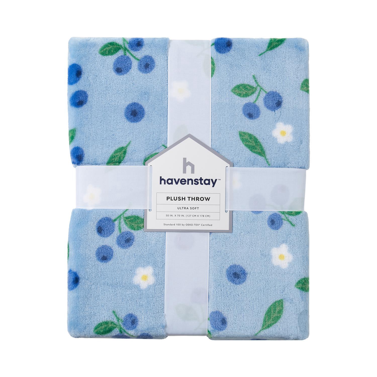 Havenstay Printed Plush Throw Blueberries, 50 in x 70 in