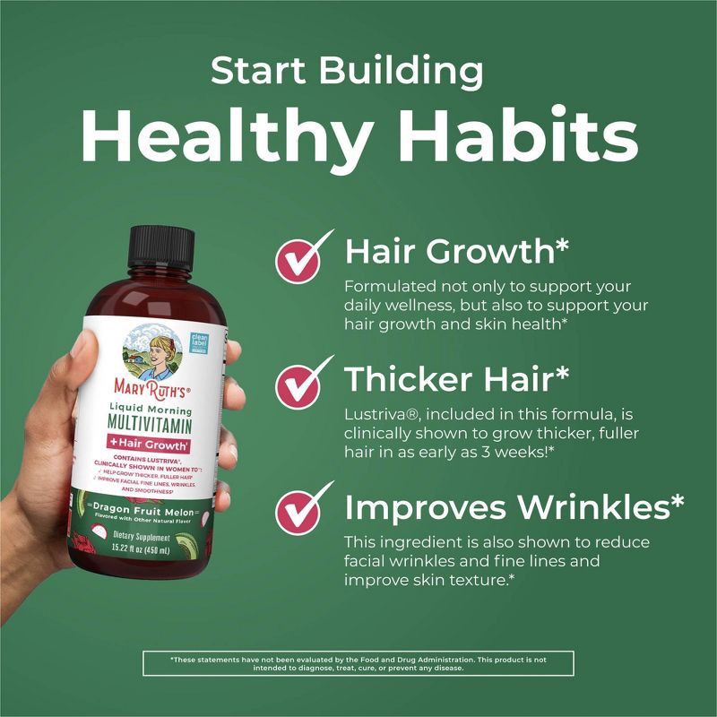 MaryRuth's Liquid Morning Multivitamin + Hair Growth - Dragonfruit Melon - 15.22 fl oz