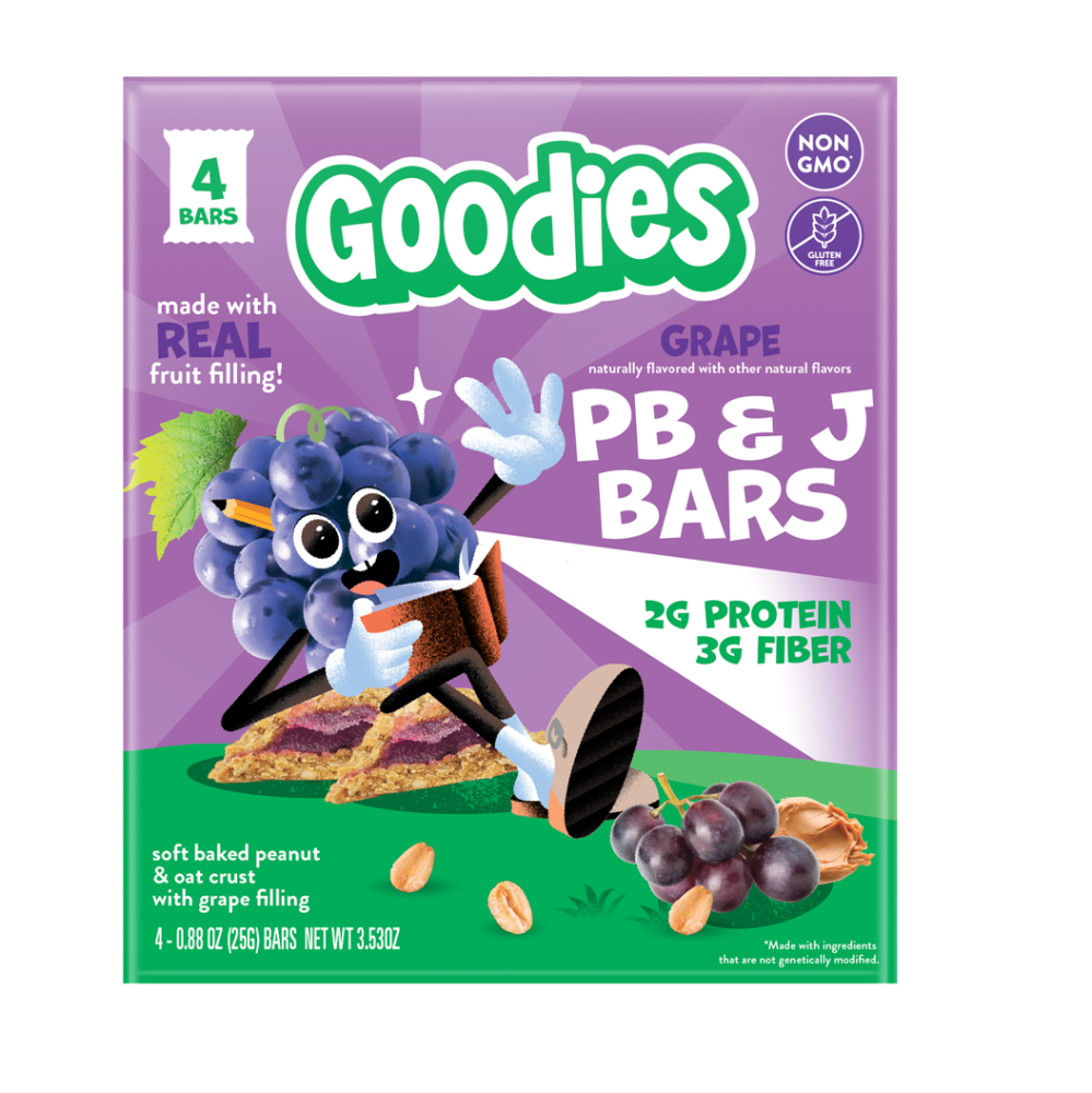 Snack time just got a whole lot tastier! Goodies Grape PB&J Bars are soft-baked pockets made with a whole grain oat & peanut crust, and filled with an irresistible jammy texture and grape flavor. Good…