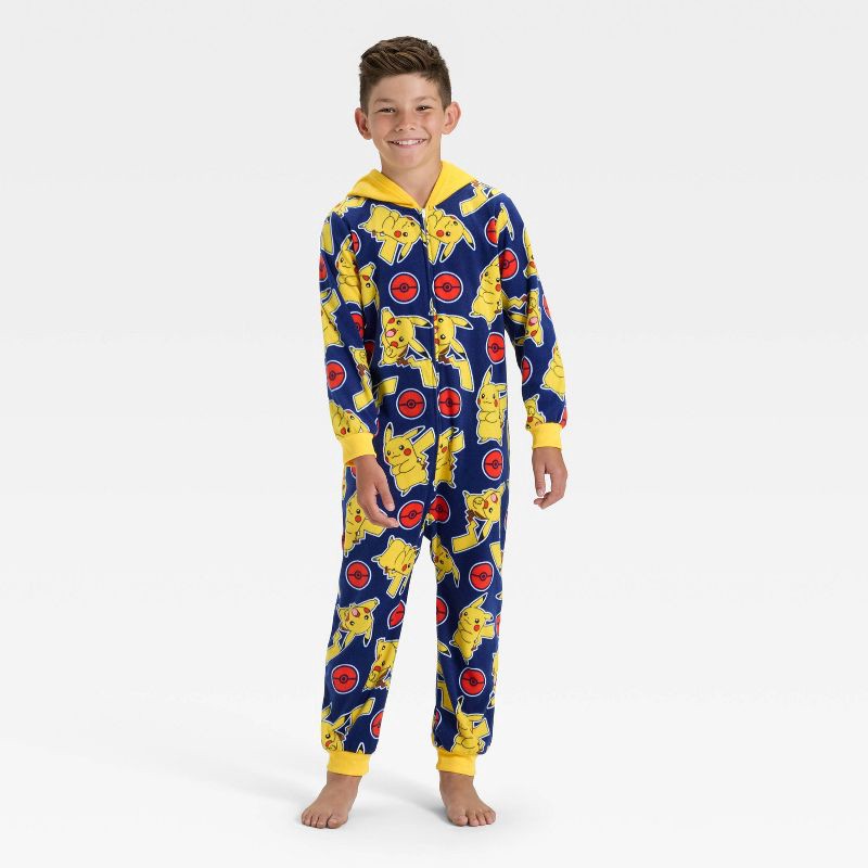 Let your little one power up for play or bedtime in this Boys' Pikachu Union Suit - Navy Blue. Made from soft fabric with a cozy hood and fun character details, this one-piece suit is perfect for Poké…