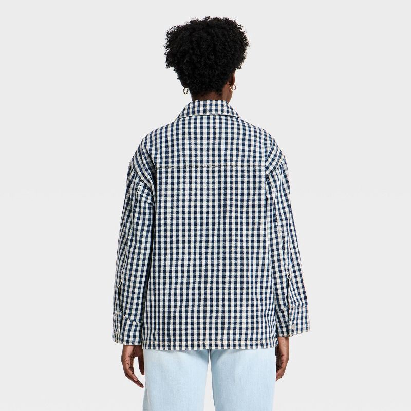 - Universal Thread denim chore coat with blue gingham pattern
