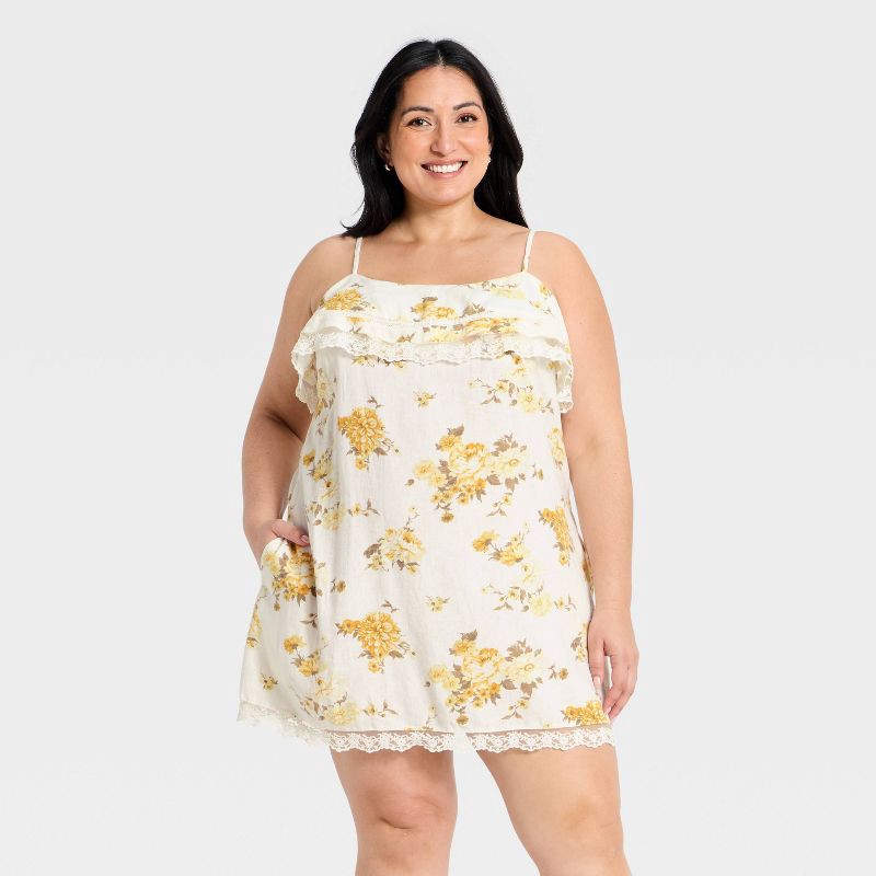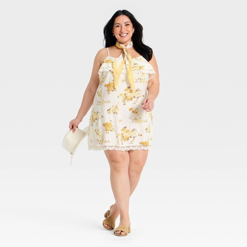 Women's Sleeveless Western Mini Sundress - Universal Thread™ Yellow Floral XXL