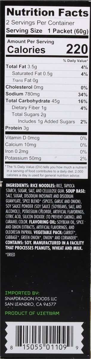 Rice Noodles: Rice, Tapioca Starch, Sugar, Salt, and Cellulose Gum. Soup Base: Salt, Sugar, Disodium Inosinate and Disodium Guanylate, Spice Blend (Dried) (Spices, Garlic and Onion), Soy Sauce Powder …