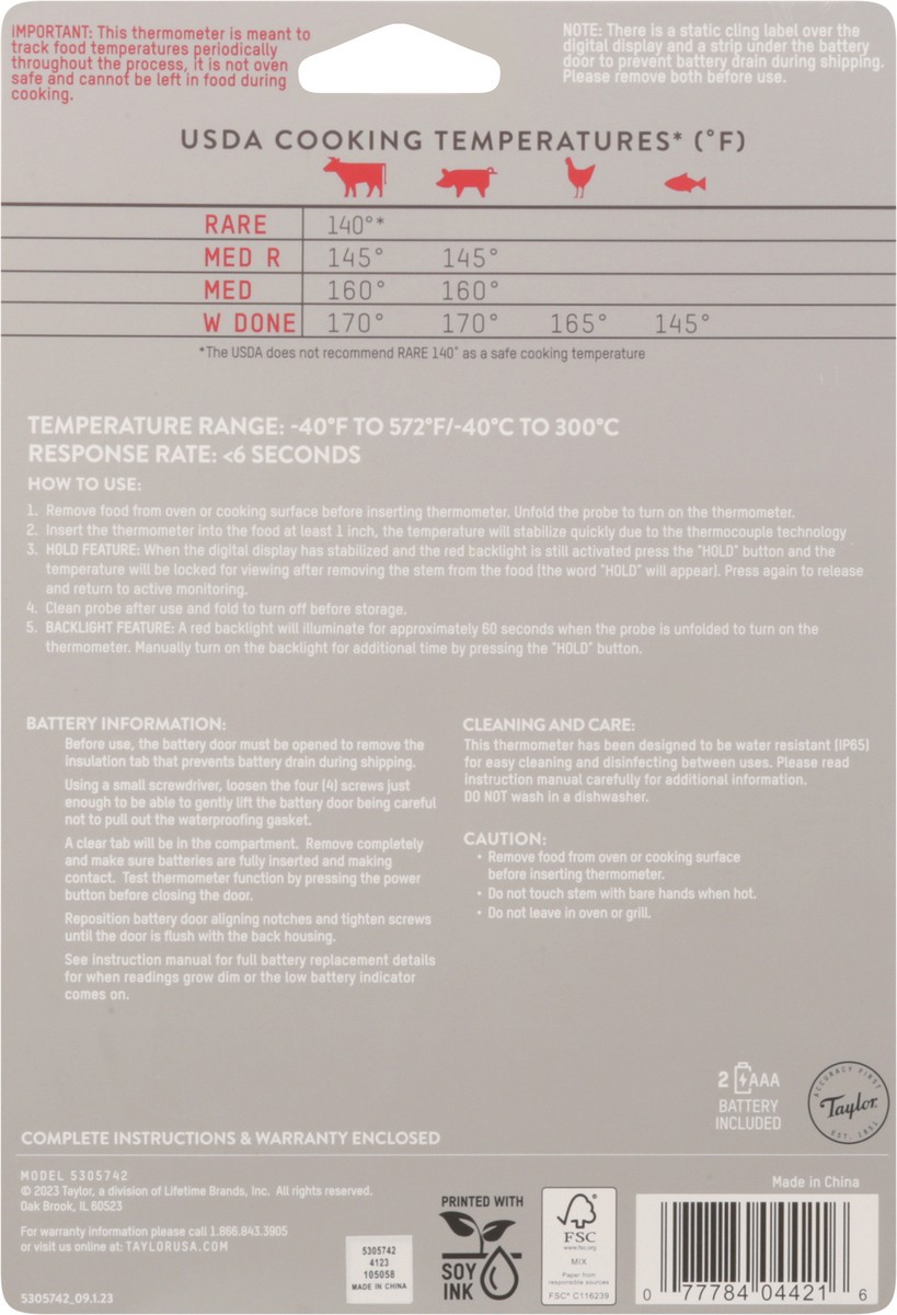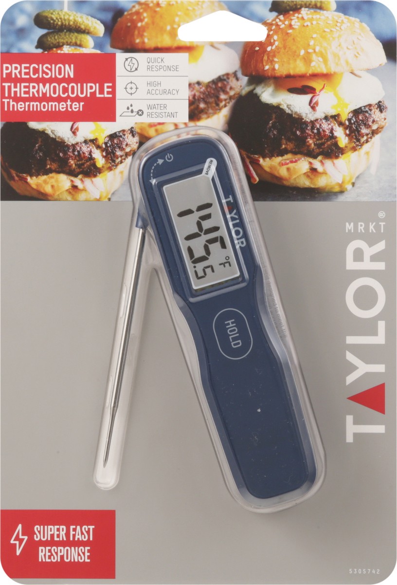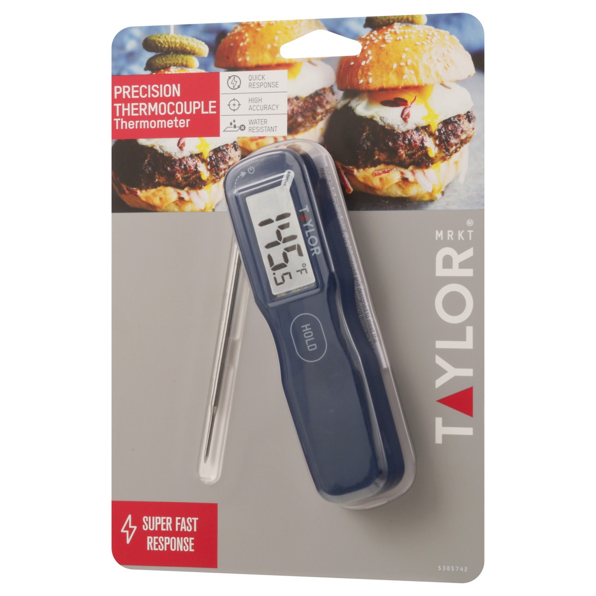 Use this Taylor Thermocouple Folding Thermometer to read internal temperatures in 3-6 seconds. The HOLD feature allows the temperature reading to be locked so the thermometer can be removed from heat …