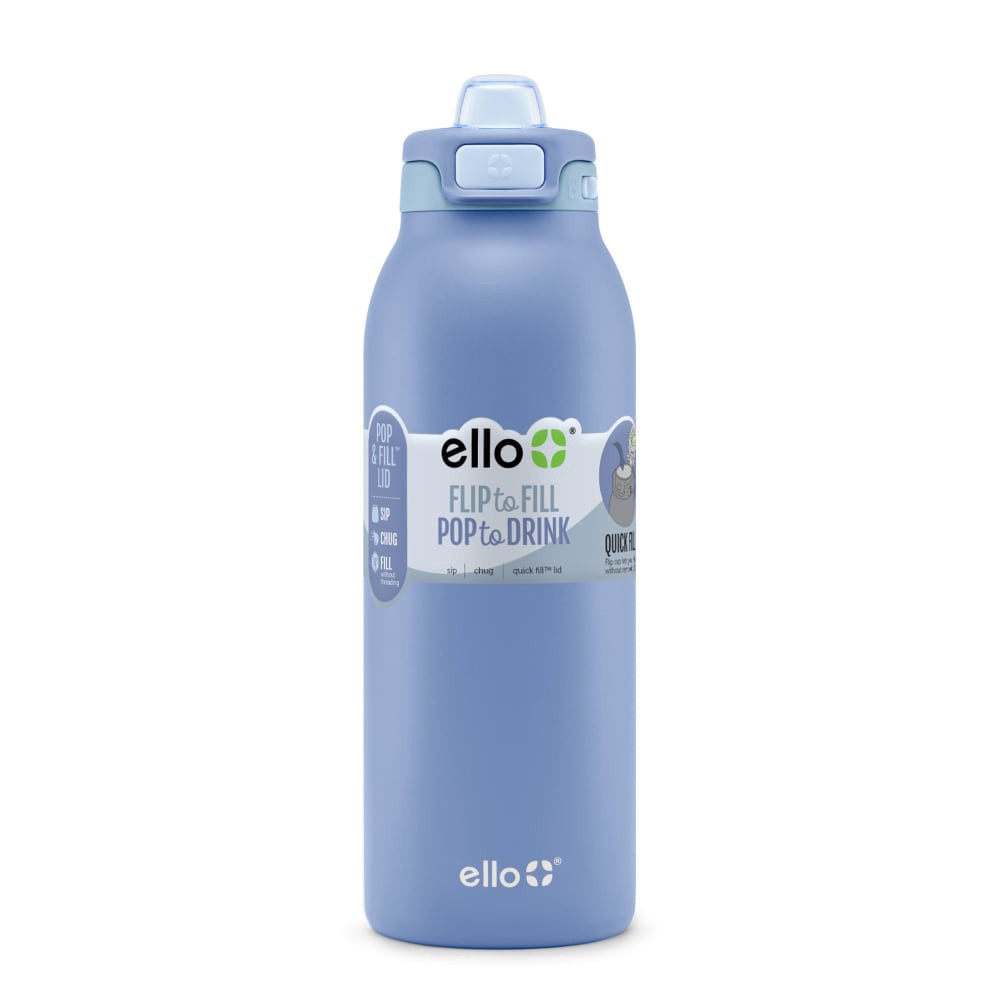 Ello Pop & Fill Stainless Steel Water Bottle - Raincloud