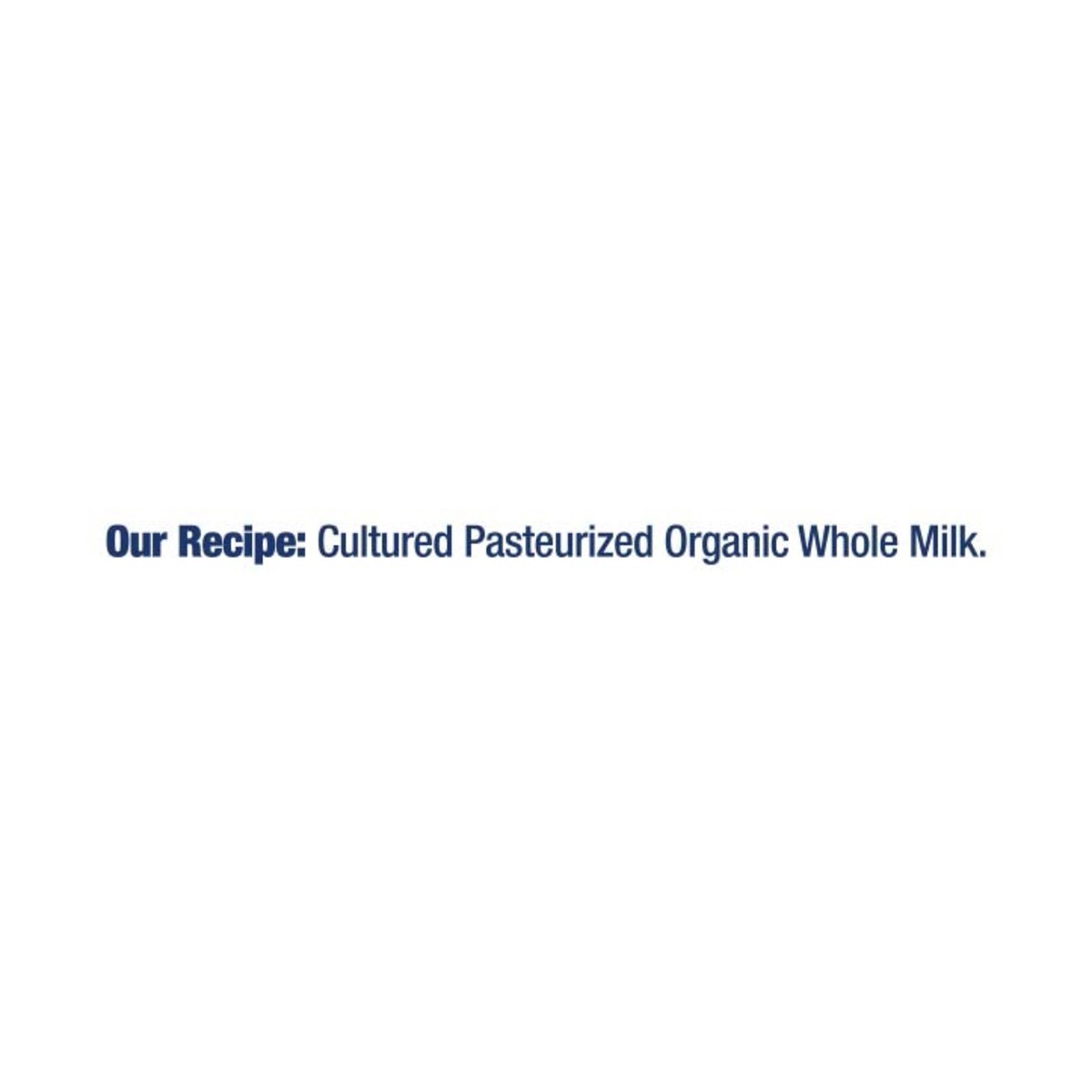 Our Recipe: Cultured Pasteurized Organic Whole Milk, 6 Live Active Cultures: S. Thermophilus, L. Bulgaricus, L. Acidophilus Bifidus, L, Paracasei and L, Rhamnosus.