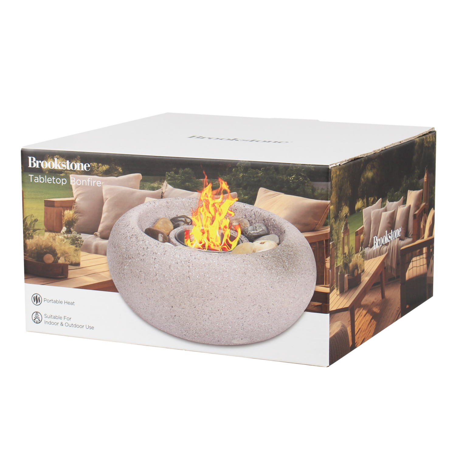 Brookstone Light Grey Cement Firebowl With Natural Stone