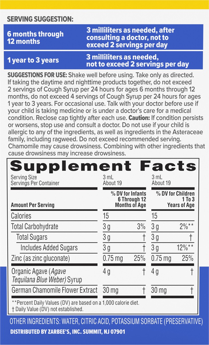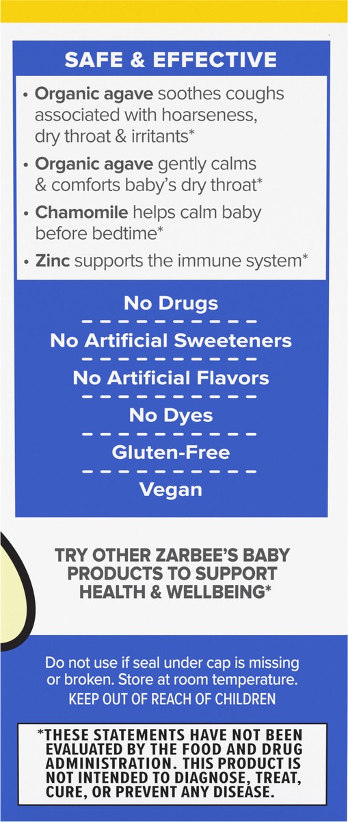 Baby Nighttime cough syrup soothes coughs**, supports the immune system & promotes relaxation before bed with organic agave, zinc & chamomile*. These cough syrups from Zarbee's, the #1 pediatrician re…