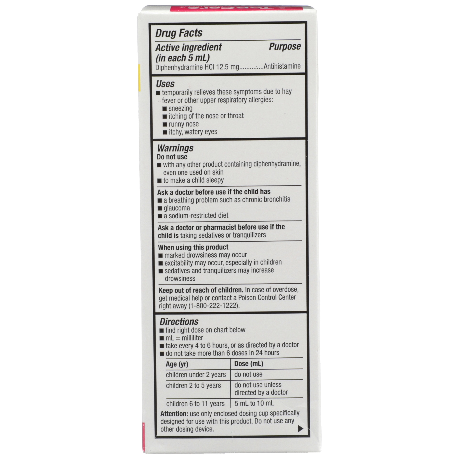 Children's Allergy Diphenhydramine Hcl 12.5 Mg/5 Ml Antihistamine Oral Solution Liquid, Cherry