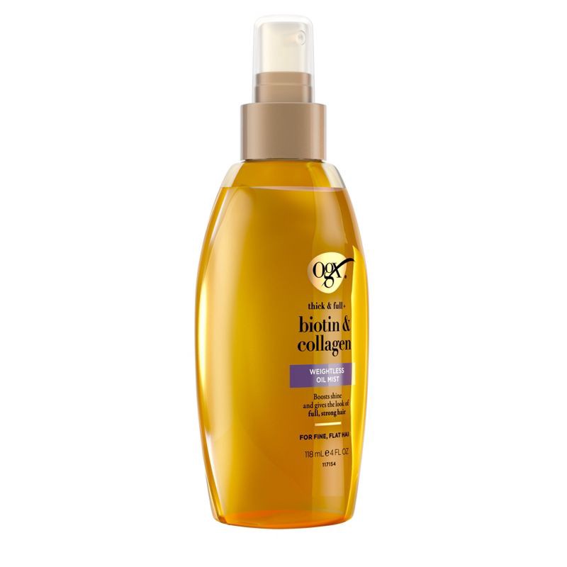 - OGX Thick & Full + Biotin & Collagen weightless oil hair mist boosts shine and softness