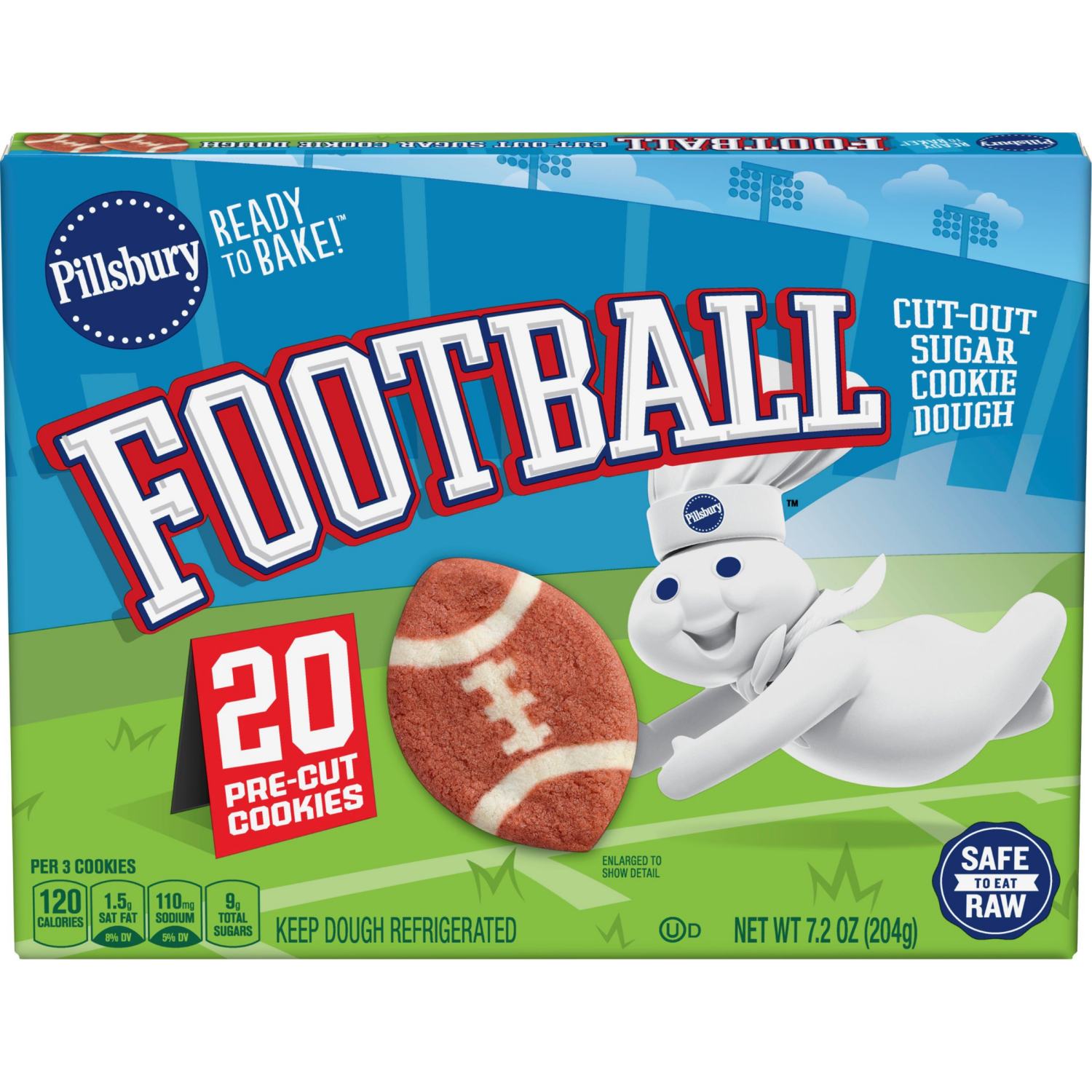 Pillsbury Ready to Bake! Football Cut-Out Sugar Cookie Dough, 20 Pre-Cut Cookies, 7.2 oz