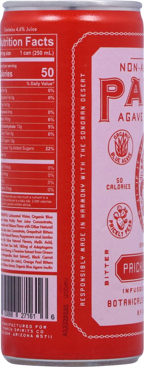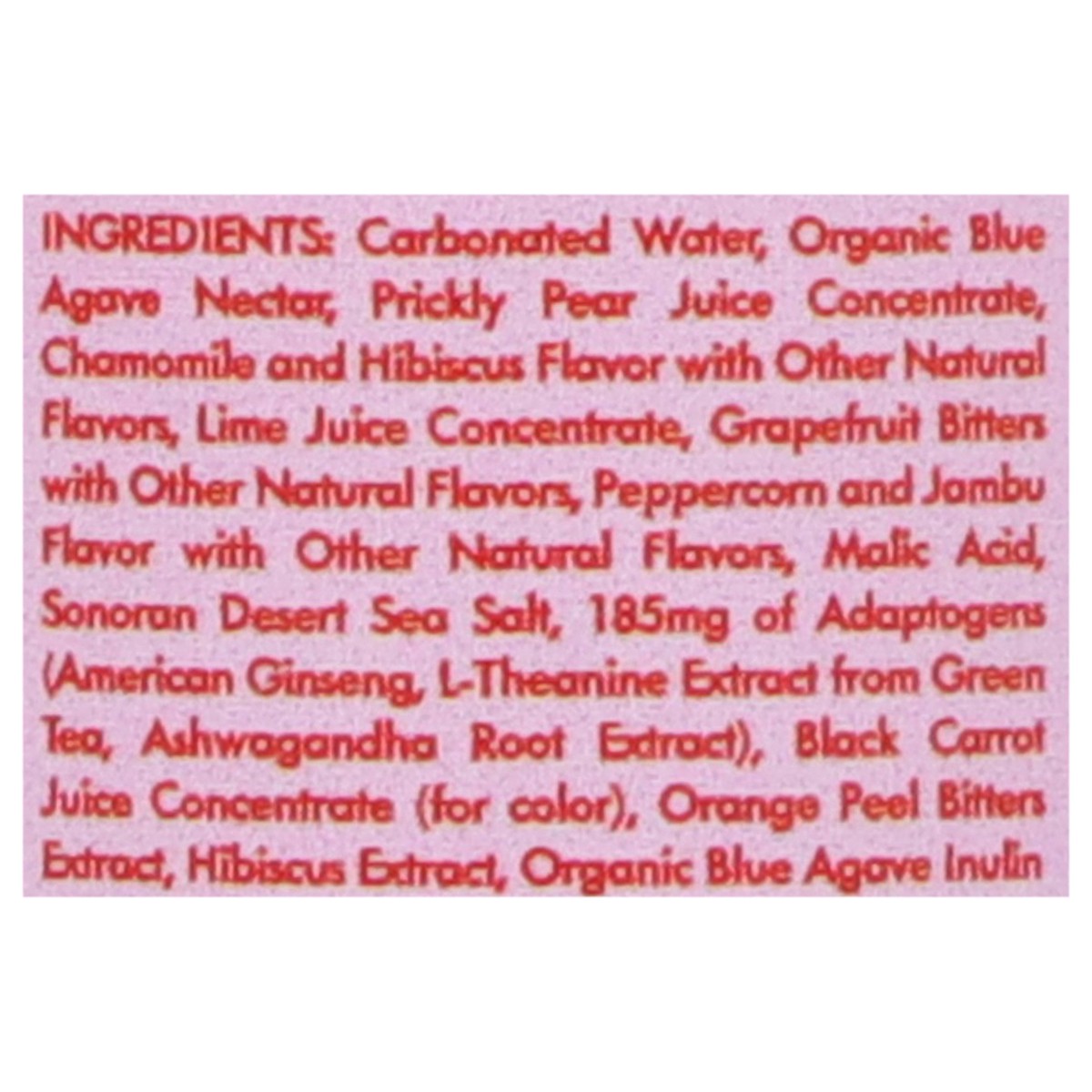 Carbonated Water, Organic Blue Agave Nectar, Prickly Pear Juice Concentrate, Chamomile and Hibiscus Flavor with Other Natural Flavors, Lime Juice Concentrate, Grapefruit Bitters with Other Natural Fla…