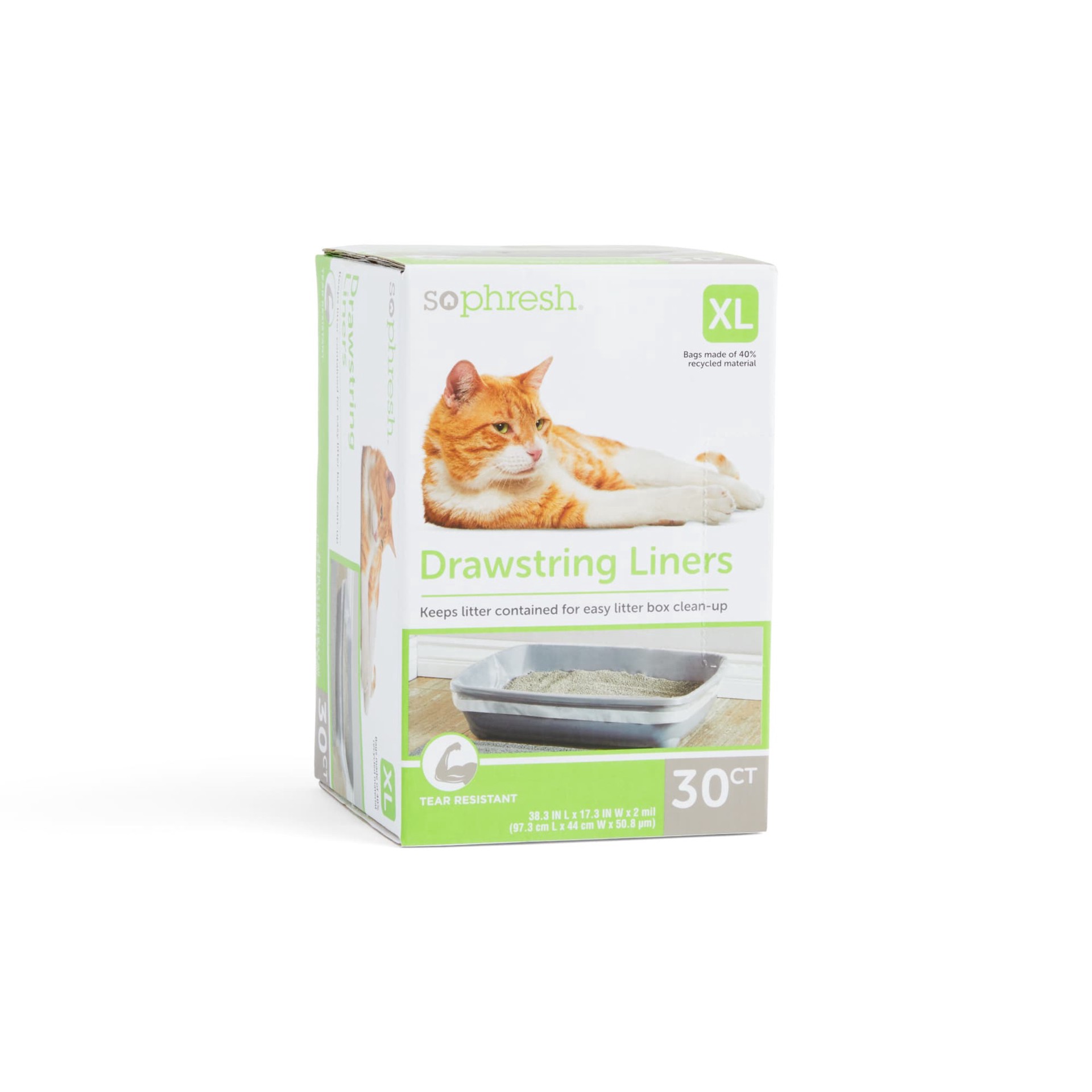 The So Phresh Drawstring Cat Litter Box Liners help make pan maintenance a breeze with a custom fit and tear-resistant design. This disposable litter box accessory features drawstring tabs so you can …