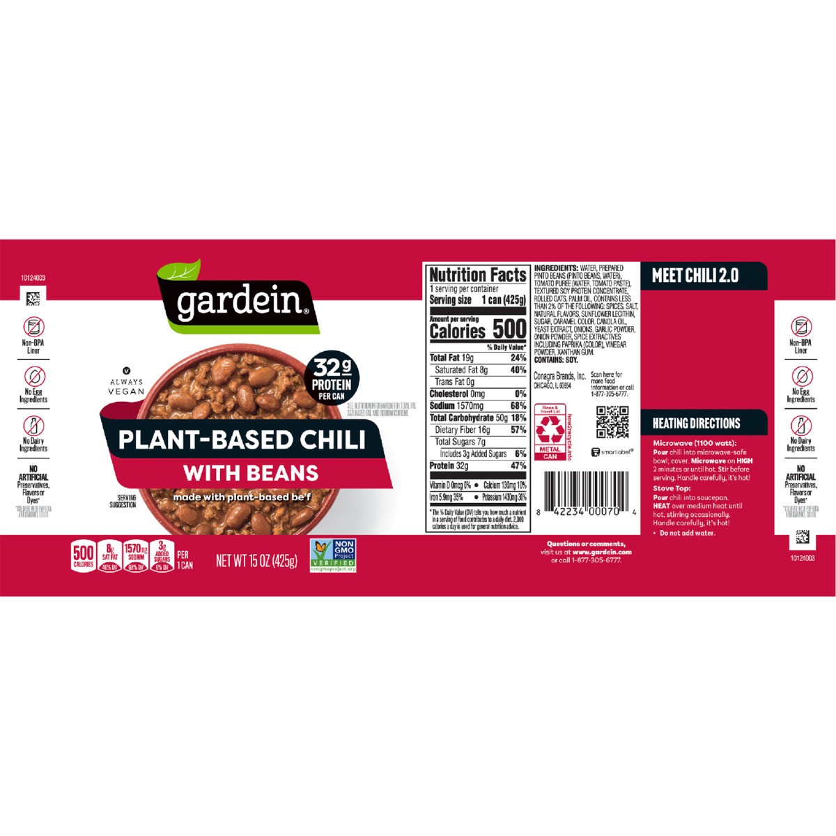 Enjoy the taste and texture of beef chili without the meat, with Gardein Plant-Based Chili With Beans. Delicious Gardein plant-based be'f crumbles combined with hearty beans, tomatoes and a bold spice…