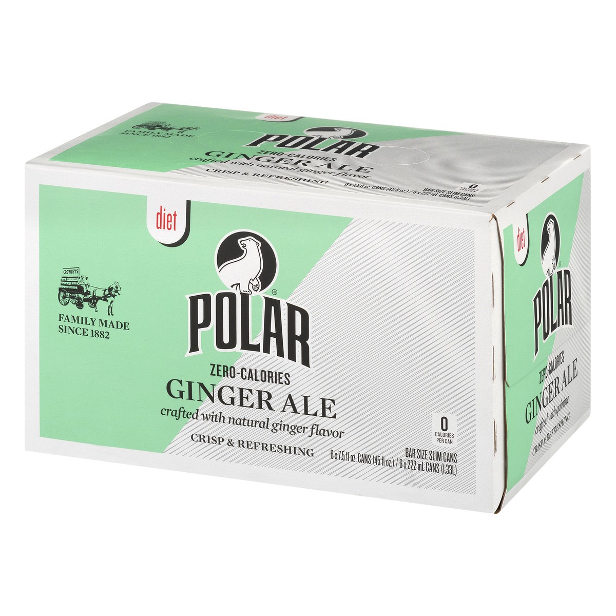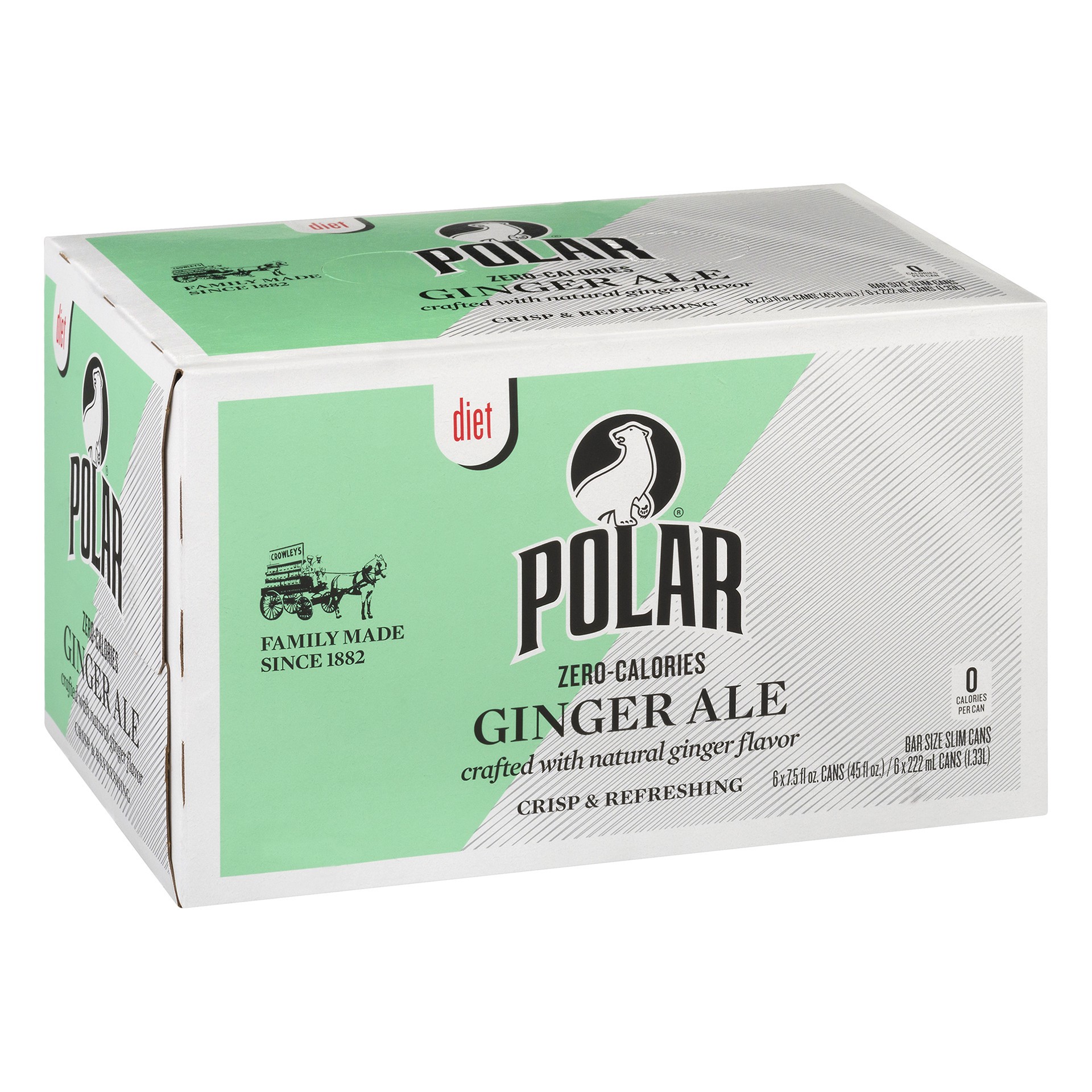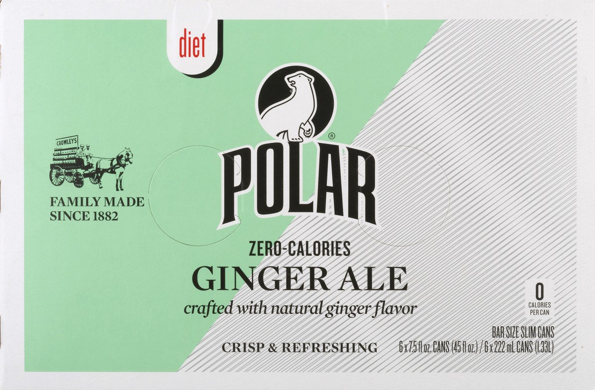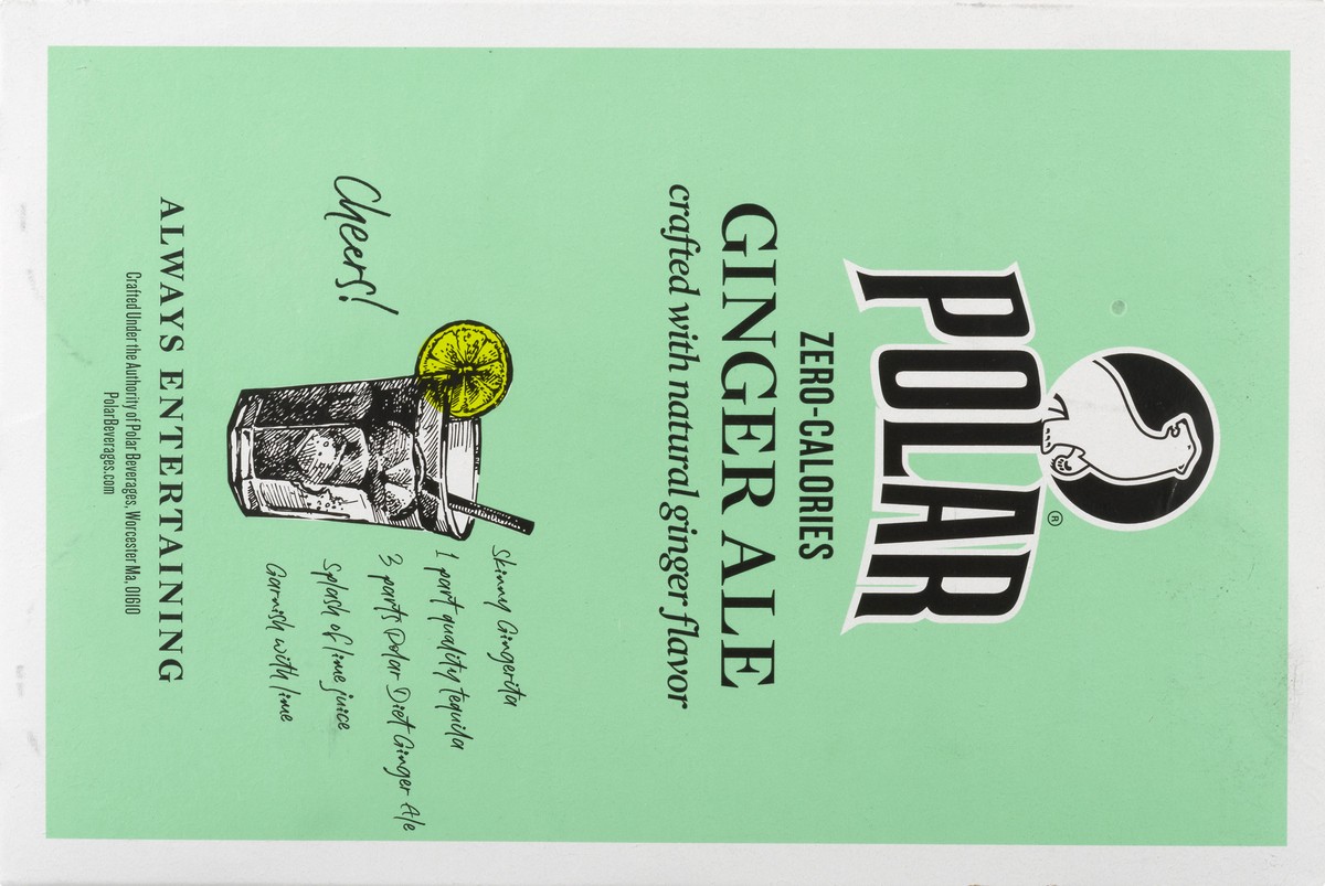 Crafted with natural ginger flavor. 0 calories per can. Zero calories. Family made since 1882. Crafted with quinine. polarbeverages.com.