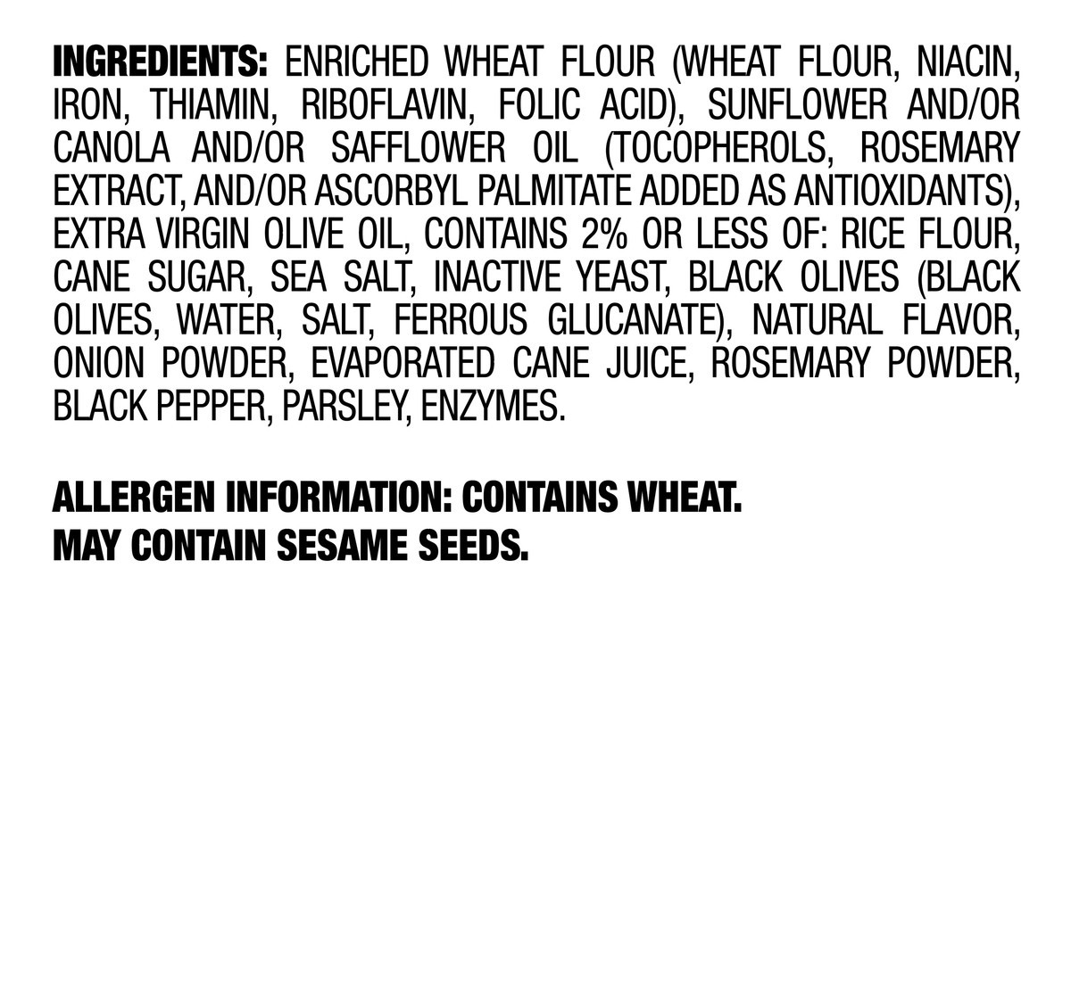 Enriched Wheat Flour (Wheat Flour, Niacin, Iron, Thiamin, Riboflavin, Folic Acid), Sunflower And/Or Canola And/Or Safflower Oil (Tocopherols, Rosemary Extract, And/Or Ascorbyl Palmitate Added As Antio…