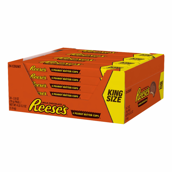 - Contains one (1) 2.8-ounce pack of REESE''S Milk Chocolate King Size Peanut Butter Cups CandyEnjoy REESE''S peanut butter covered in creamy milk chocolate when you need a big, bold and delicious snack at sporting events, game nights, parties or the moviesIncludes 4 certified kosher and gluten free peanut butter chocolate candies in a king size packUse REESE''S candy for filling birthday gift bags and back-to-school lunch boxes or bridal and baby shower candy dishesShare the unforgettable combination of milk chocolate and rich peanut butter cups when you need a sweet Halloween, Christmas, Valentine''s Day or Easter candyPop REESE''S candy in the freezer for a thrillingly cold taste of pure deliciousness