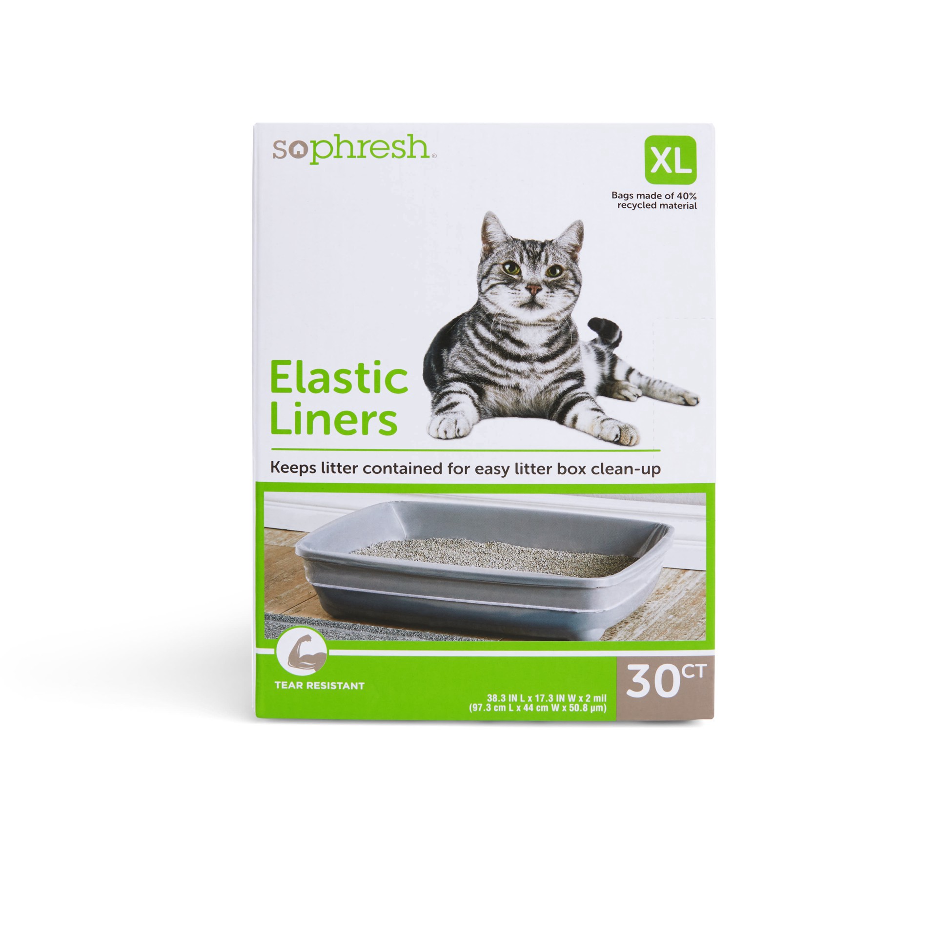 So Phresh Elastic Cat Litter Box Liners, 38.3" L X 16.3" W, Count of 30