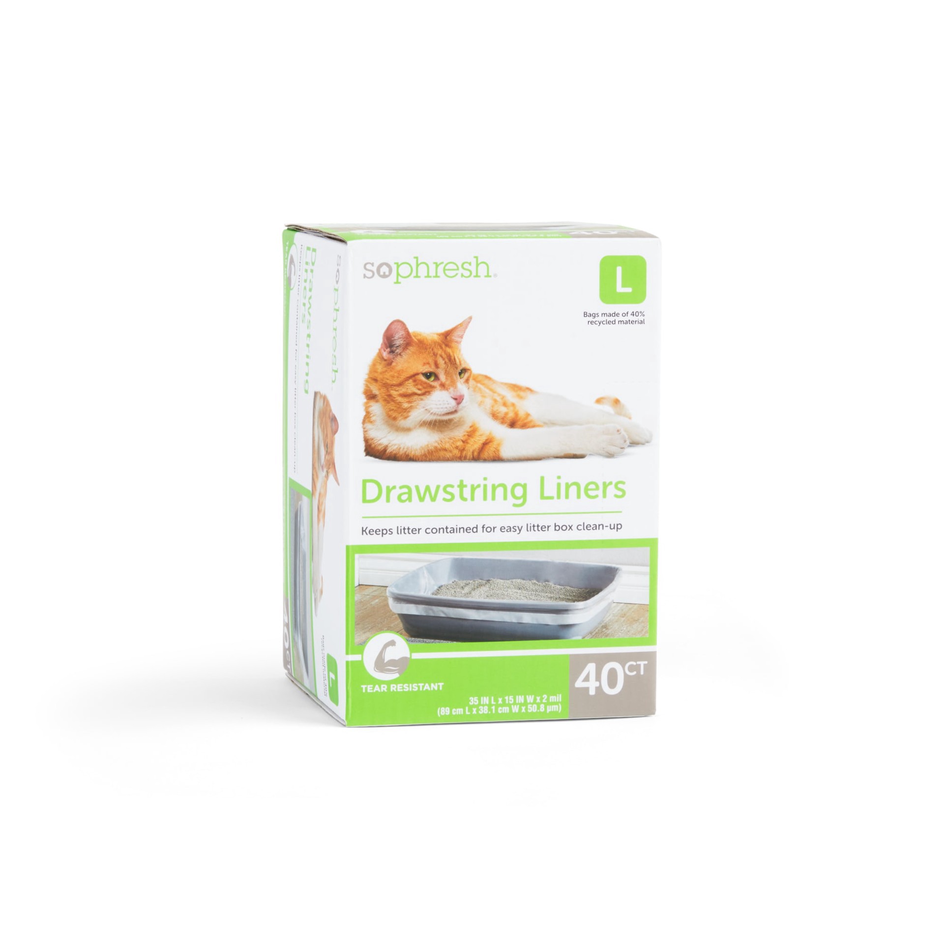 So Phresh Drawstring Cat Litter Box Liners, 35 in L x 14 in W, 40 Count