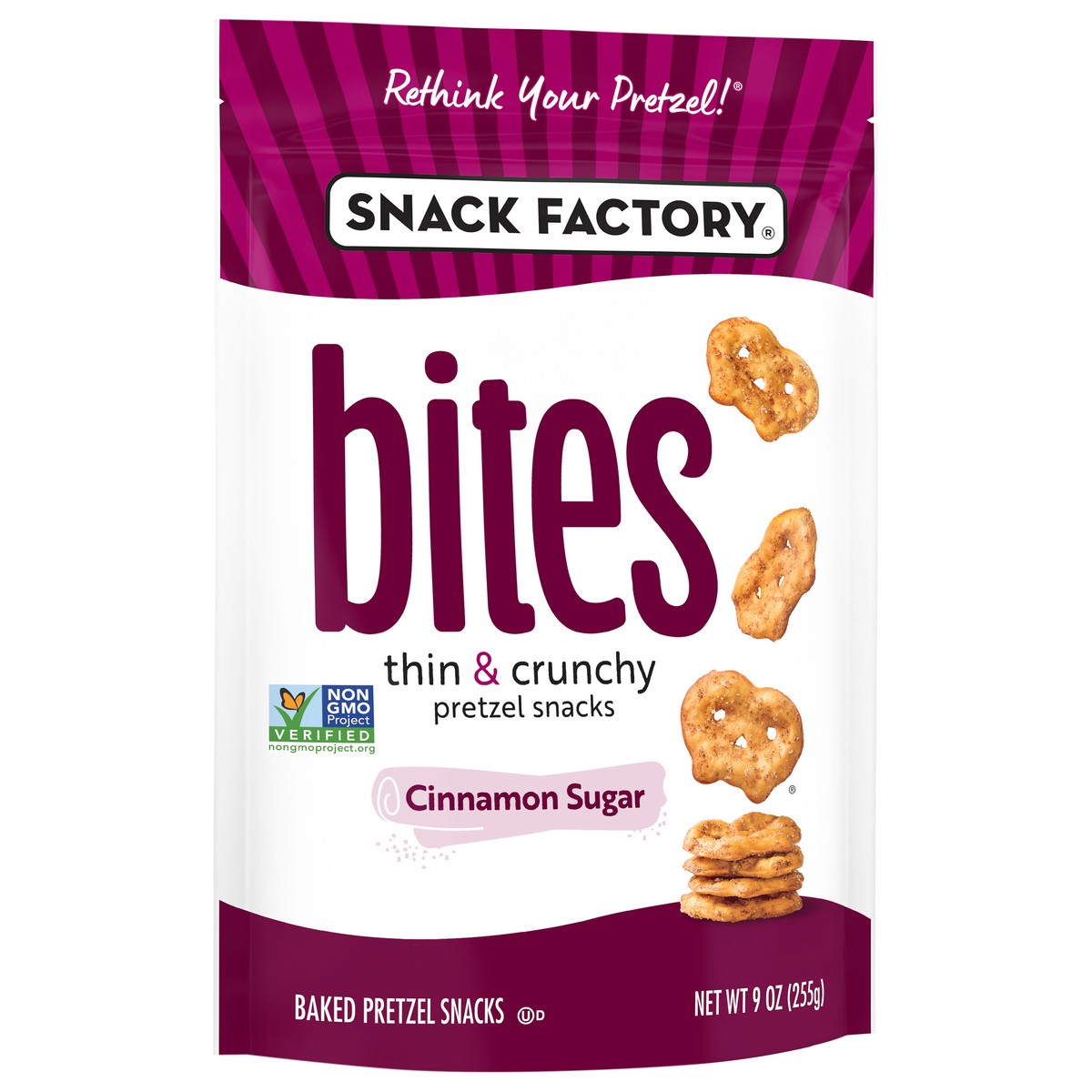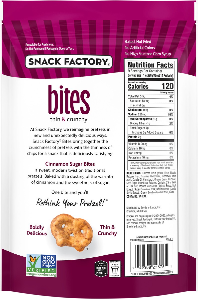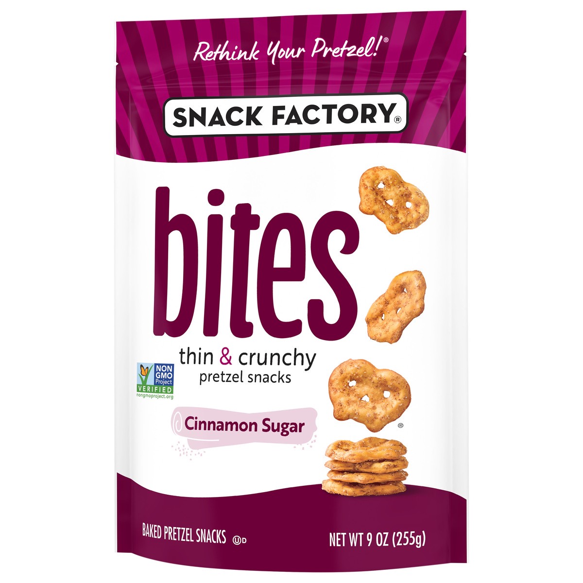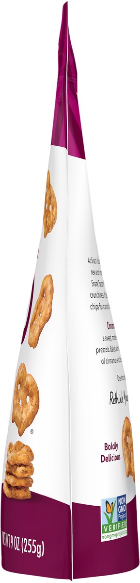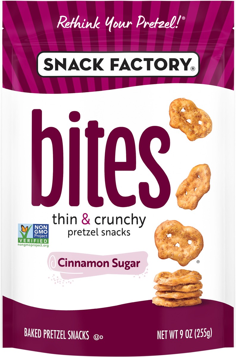 Get a taste of Cinnamon Sugar Snack Factory Pretzel Crisps Bites. Thin pretzels that are bite-sized, deliciously seasoned and perfectly poppable, right out of the bag. Try these Cinnamon Sugar pretzel…