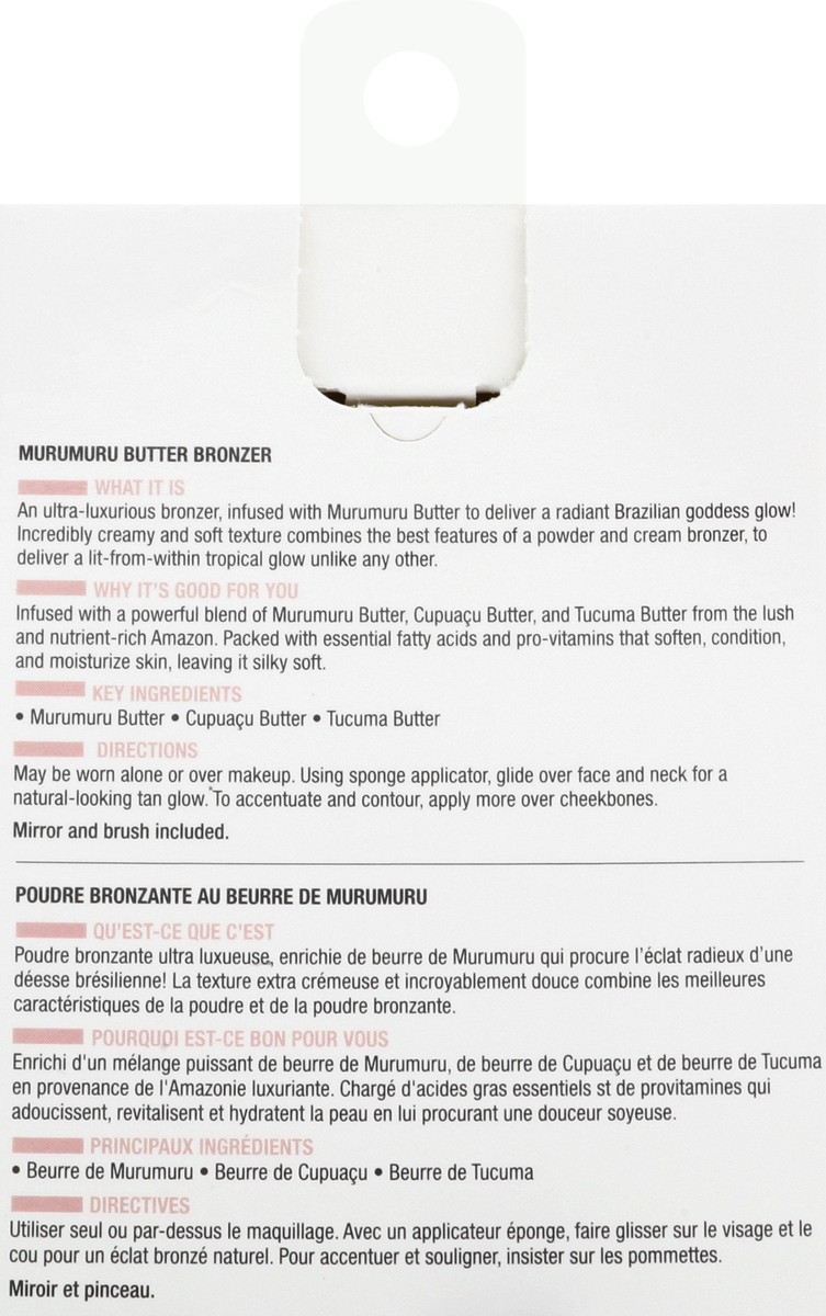 Murumuru butter bronzer. Gluten-free. Vegan. New look. Murumuru Butter Bronzer: What it is: An ultra-luxurious bronzer, infused with murumuru butter to deliver a radiant Brazilian goddess glow! Incred…