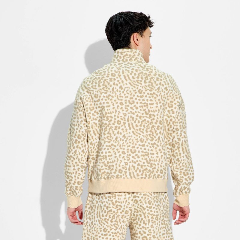Men's Heavyweight Fleece 1/2 Zip Pullover Sweatshirt - Original Use™ Ivory Leopard L