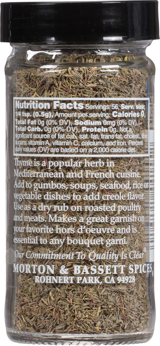 All natural. Preservative free. Non-irradiated. Thyme is popular herb in Mediterranean and French cuisine. Add to gumbos, soups, seafood, rice or vegetable dishes to add creole flavor. Use as dry rub …