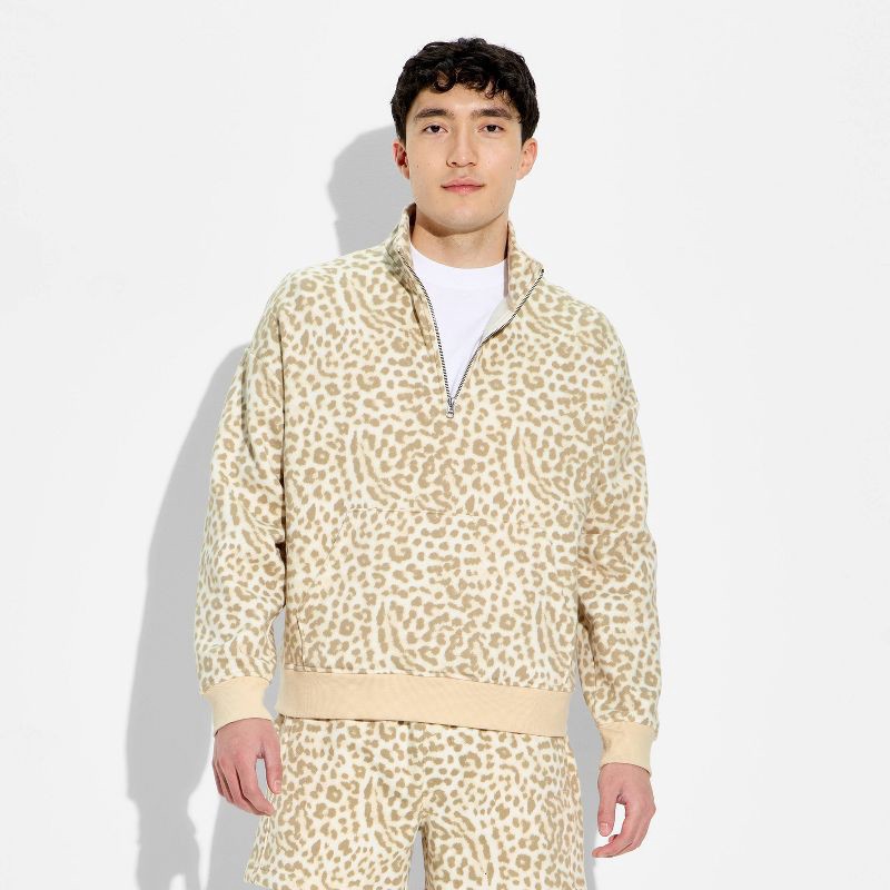 Men's Heavyweight Fleece 1/2 Zip Pullover Sweatshirt - Original Use™ Ivory Leopard XL