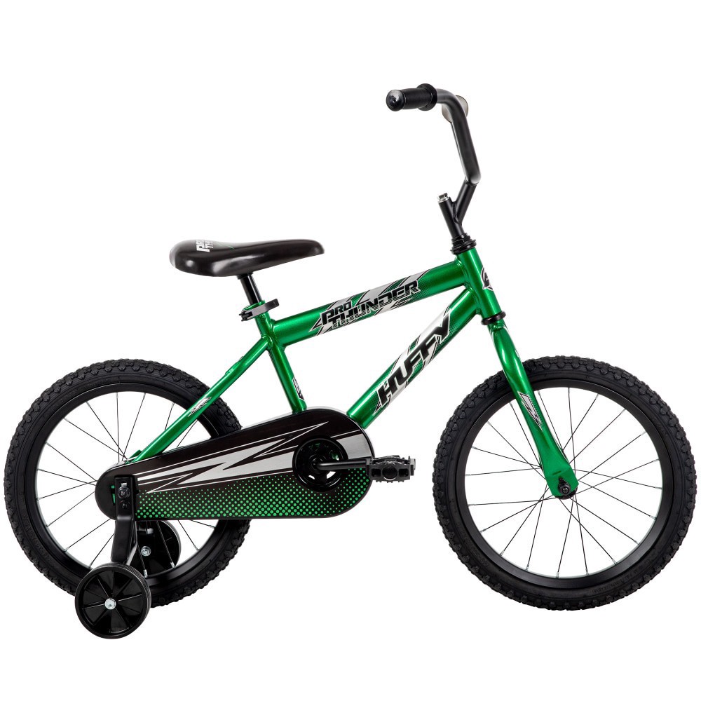 Are you ready to race? The Huffy Pro Thunder 16" Bike has the perfect racing look for kids when they storm down the sidewalk. Any racer will love the awesome chrome graphics covering the durable steel…