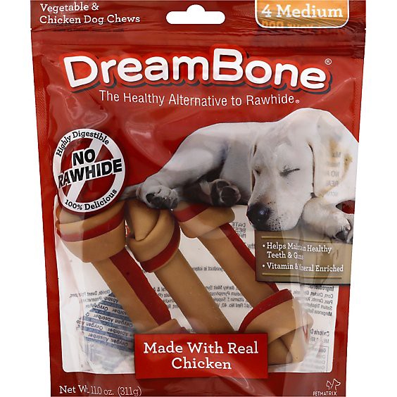 Dreambone Dog Chews No Rawhide Vegetable & Chicken Medium Pouch 4 Count - 11 Oz