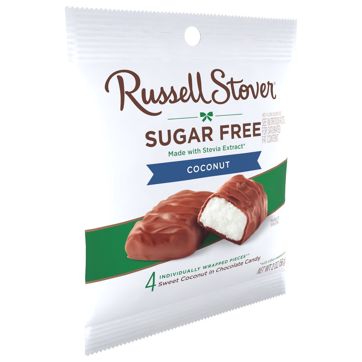 - RUSSELL STOVER Sugar Free Coconut in Chocolate Candy is made with Stevia extract, a plant-based sweetener that delivers all the sweet taste you crave with no added sugar - zero sugar, great taste!