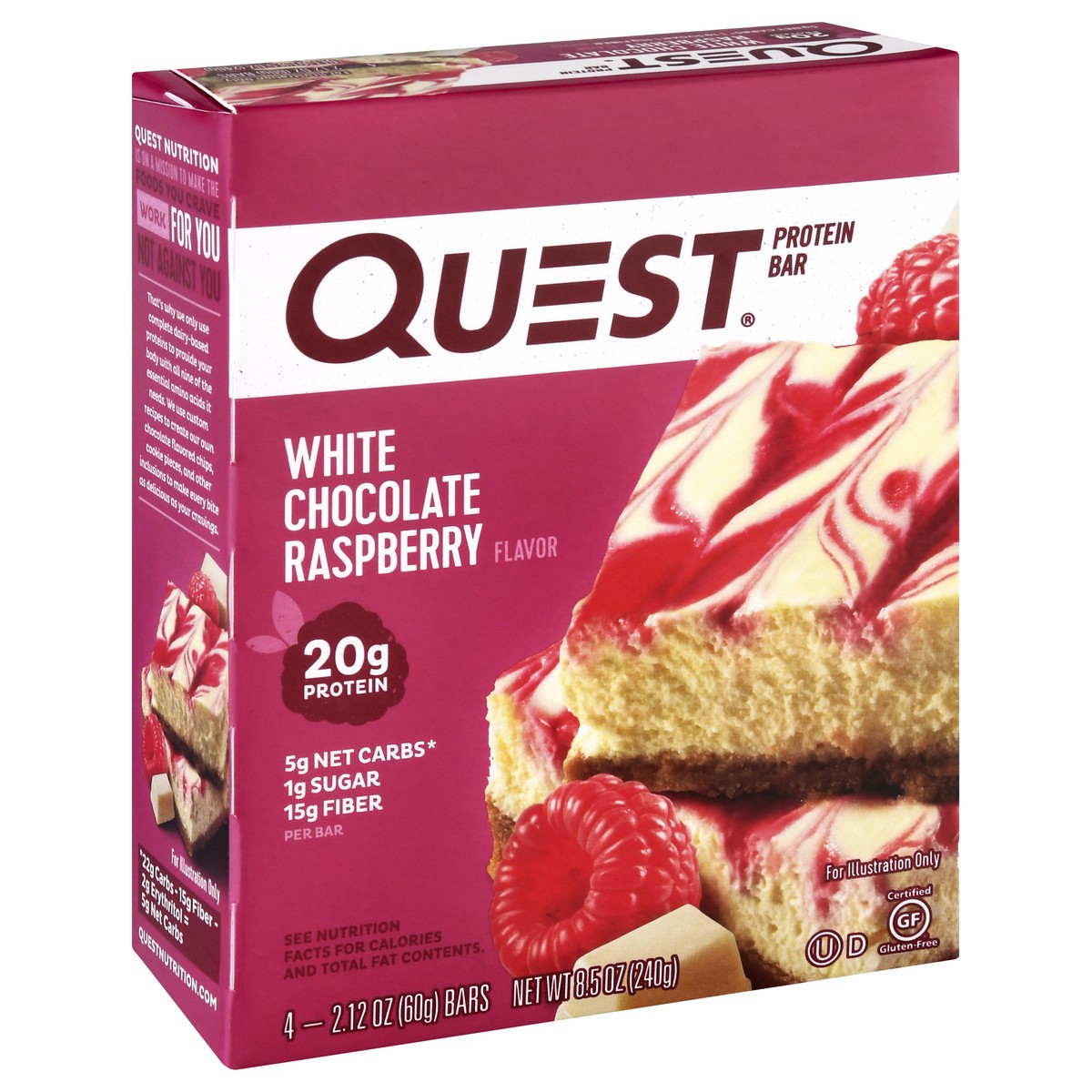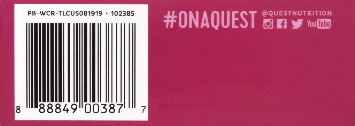 Indulge your tastebuds with the White Chocolate Raspberry Quest Protein Bar. The sweet and tart flavor of white chocolate and real dried raspberries are exactly what your cravings ordered.