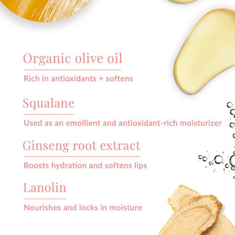 - Enriched with organic olive oil and aloe to soothe dry, rough lips