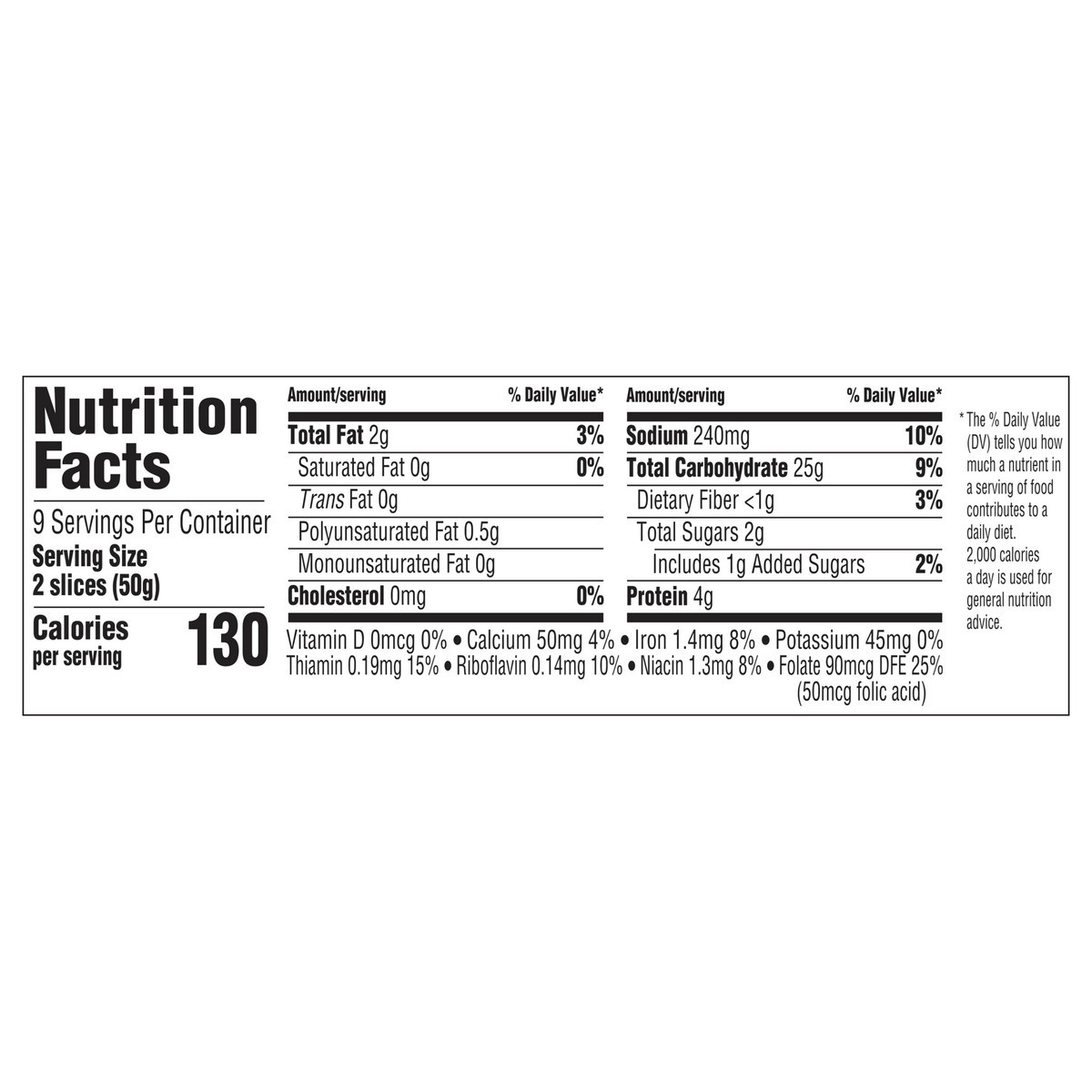 Enriched Wheat Flour [Flour, Malted Barley Flour, Reduced Iron, Niacin, Thiamin Mononitrate (Vitamin B1), Riboflavin (Vitamin B2), Folic Acid], Water, Sugar, Yeast, Vegetable Oil (Soybean), Salt, Whea…