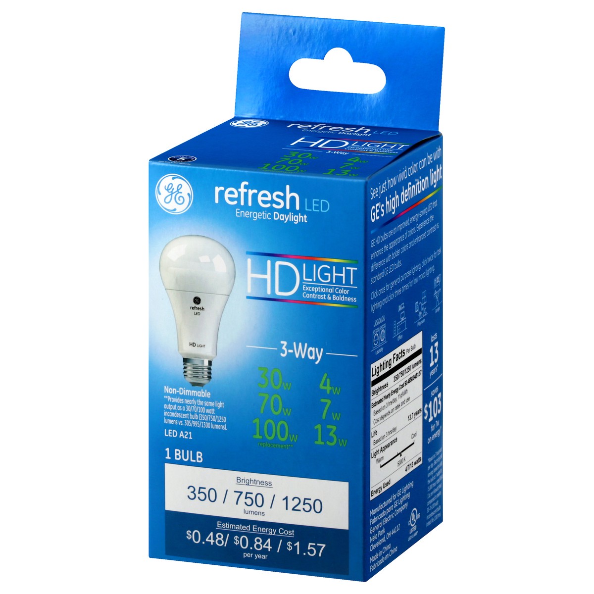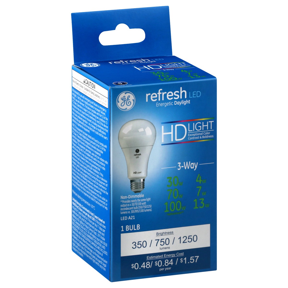 GE Refresh 30/70/100 Watts Daylight 3-Way LED A21 Light Bulb 1 ea