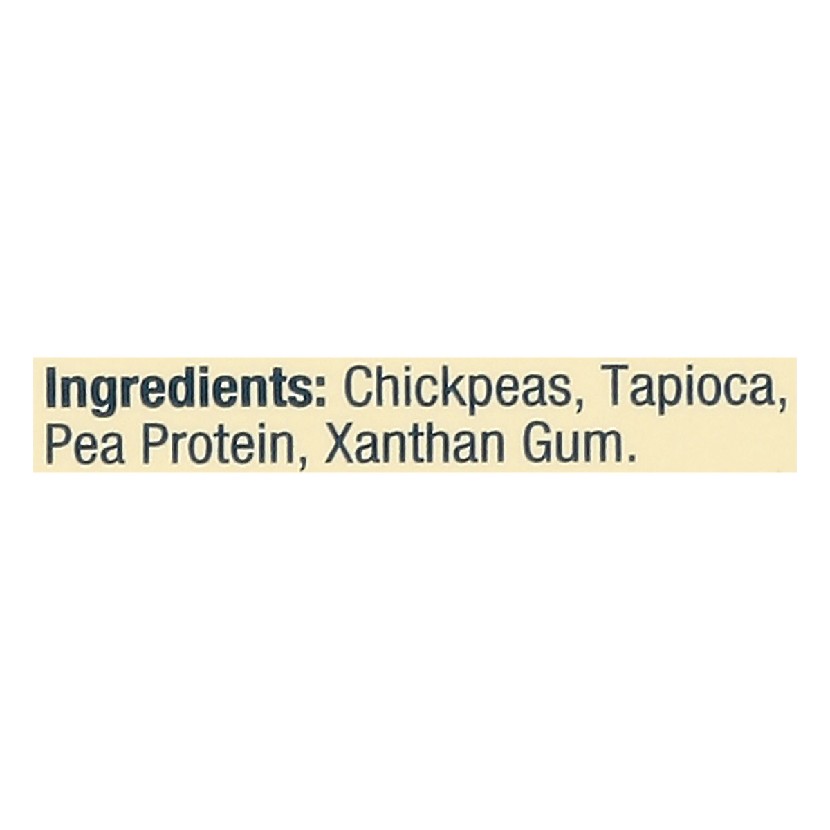 Chickpeas, Tapioca, Pea Protein, Xanthan Gum.
