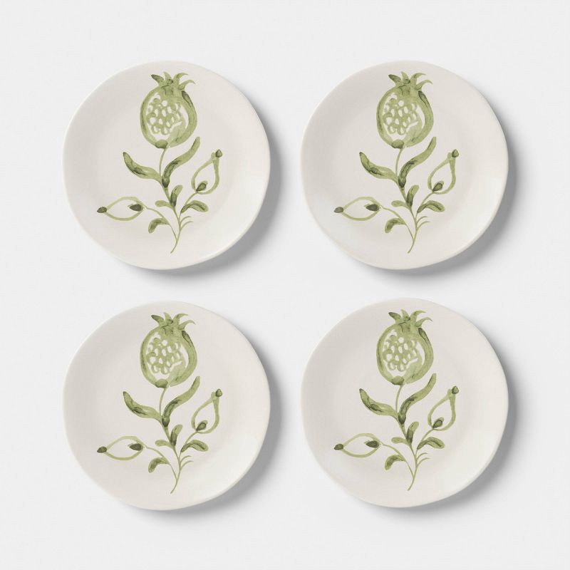 4pk 6" Stoneware Aralia Appetizer Plates Hand Painted Green - Threshold™
