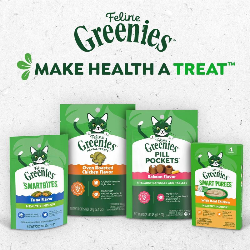 - Healthy & Delicious Cat Treats: Greenies Smart Purees cat treats lickable are nutritionally complete & balanced for adult cats for an irresistible cat snack or puree cat treat your feline will love.