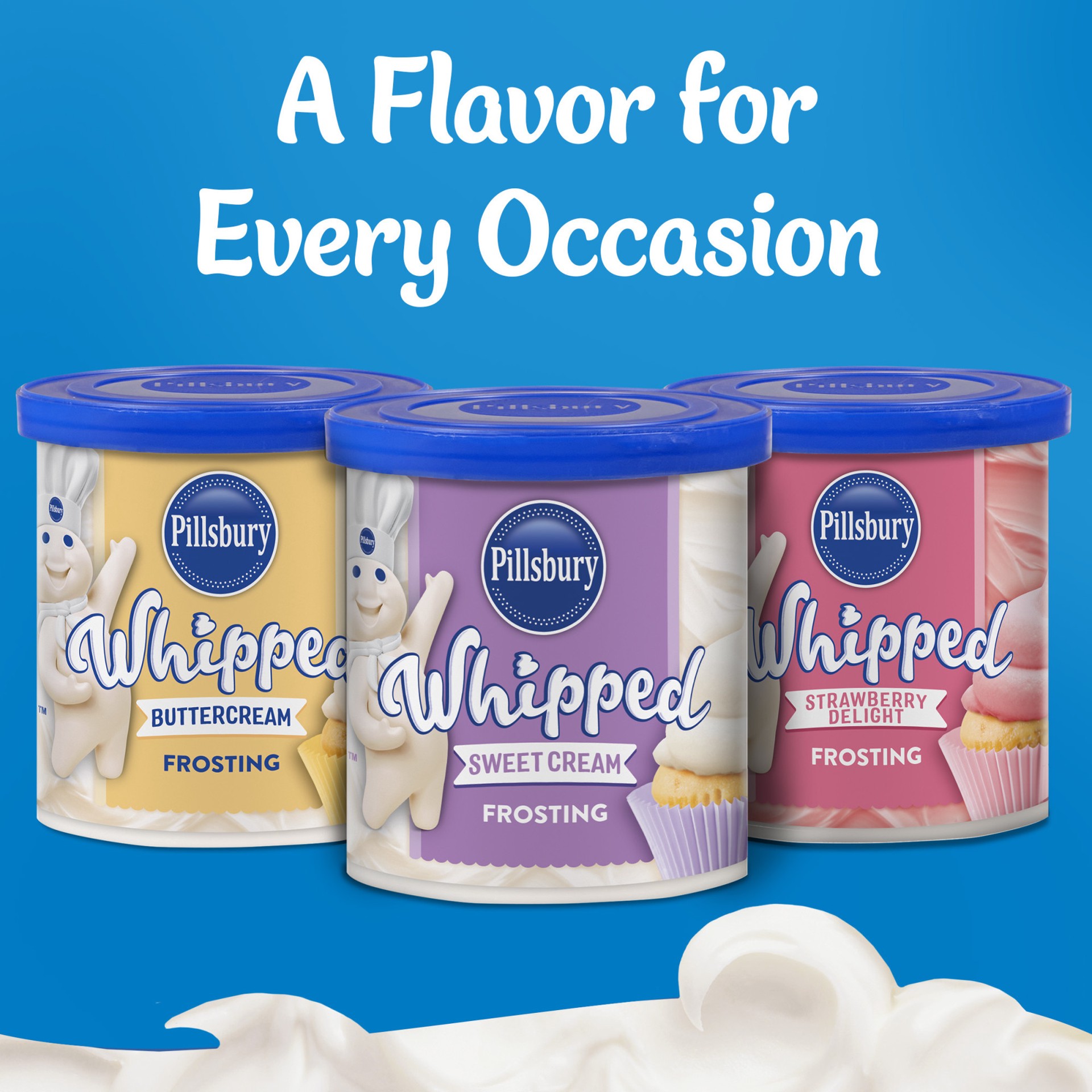 Sweeten up any bake with our ready-to-use Pillsbury Whipped Sweet Cream Frosting. Soft and fluffy, our whipped frosting is easy to spread for ultimate decorating, layering and crumb coating potential.…
