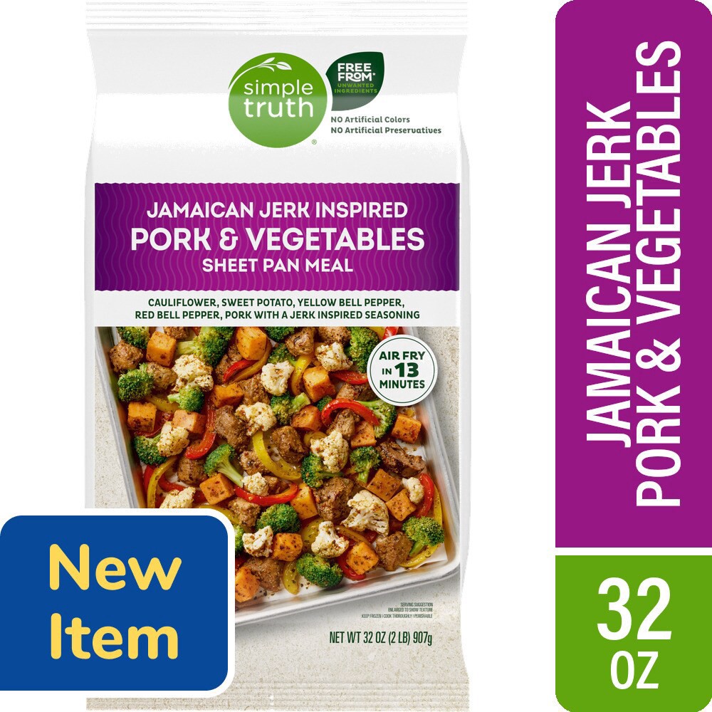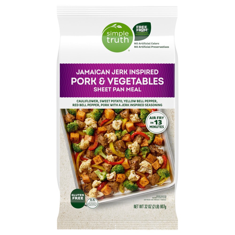 Simple Truth® Jamaican Jerk Inspired Pork and Vegetables Meal delivers an unparalleled taste experience. Each bag contains cauliflower, sweet potato, yellow bell pepper, red bell pepper, and pork with…