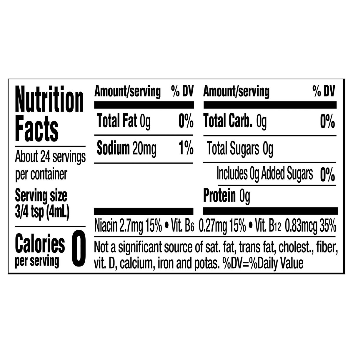 WATER, CITRIC ACID, MALIC ACID, CAFFEINE, CONTAINS LESS THAN 2% OF TAURINE, GUARANA EXTRACT, GINSENG EXTRACT (PANAX), NIACINAMIDE (VITAMIN B3), VITAMIN B6, VITAMIN B12, NATURAL FLAVOR, SUCRALOSE AND A…