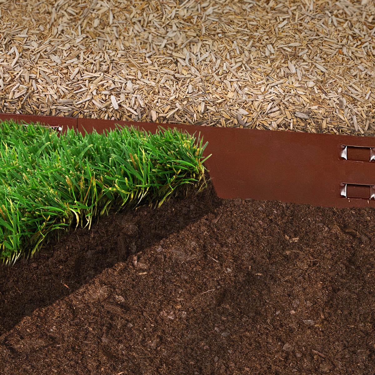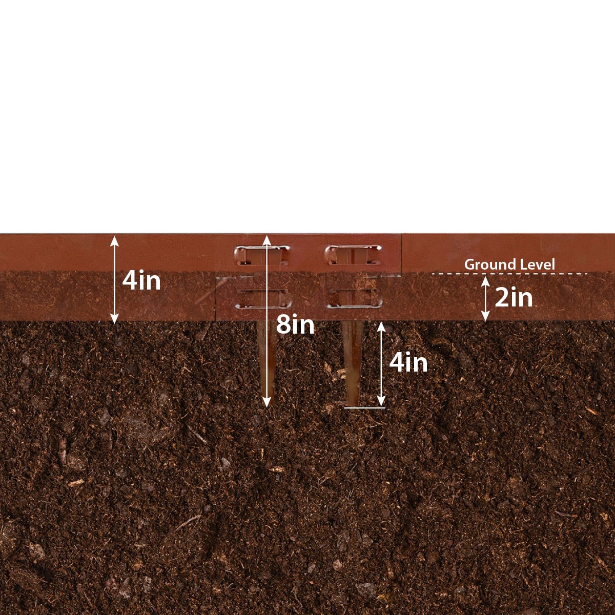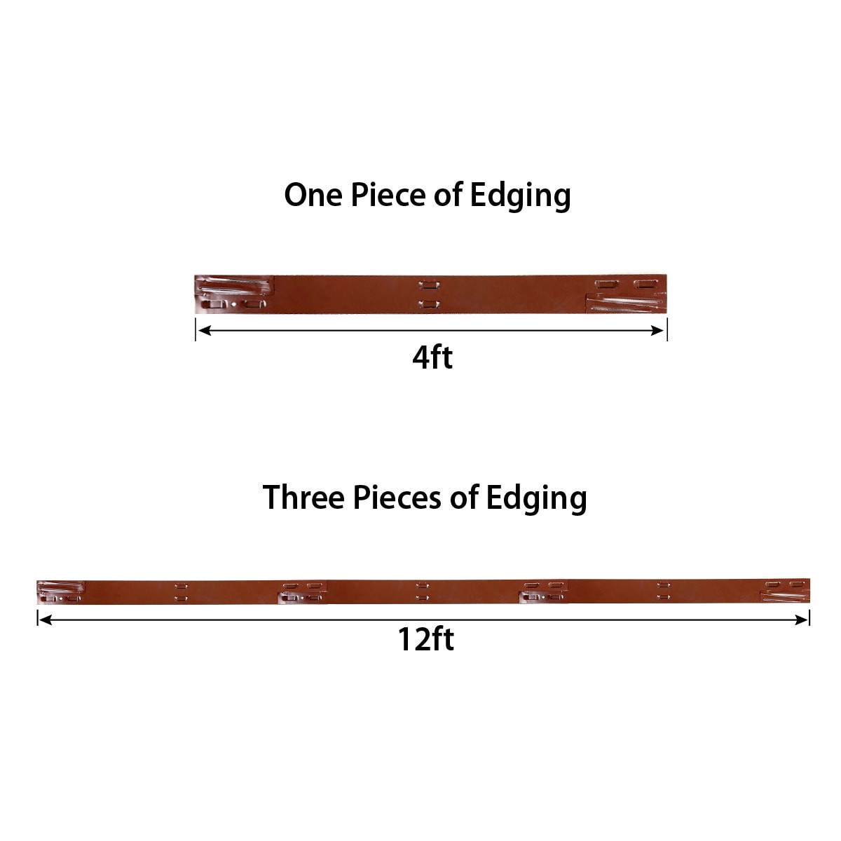 4ft W x 4in H brown steel landscape edging section. Powder coated steel helps prevent rust and corrosion. Four stakes included with each edging piece. Define walkways and garden beds with modern metal…