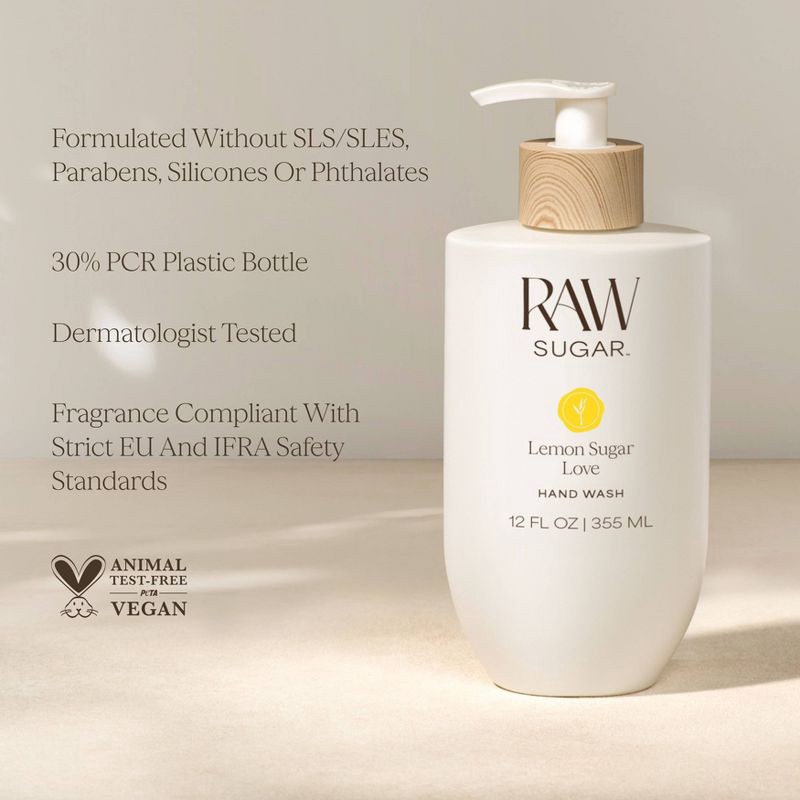 Raw Sugar Gentle Hand Wash - Lemon Sugar Love - 12 fl oz: Vegan, Gel Form, Pump Bottle, For Normal, Oily, Sensitive Skin