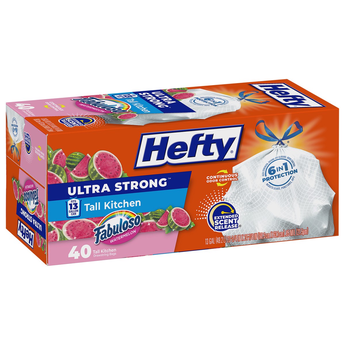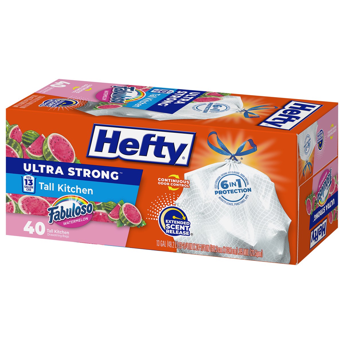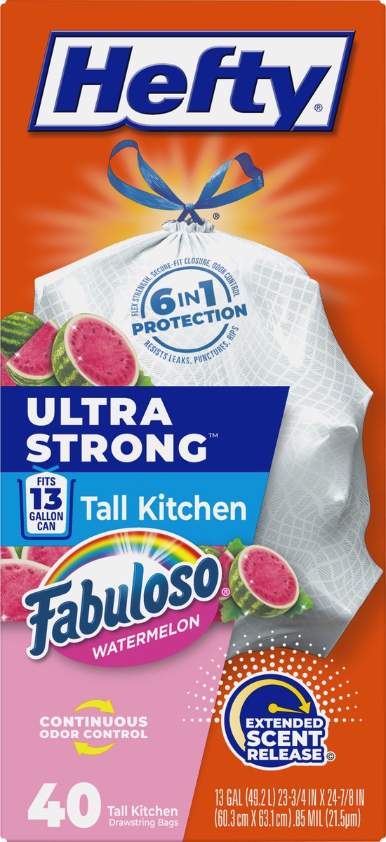 Hefty Ultra Strong 13 Gallon Fabuloso Watermelon Tall Kitchen Drawstring Bags - 40 Bags