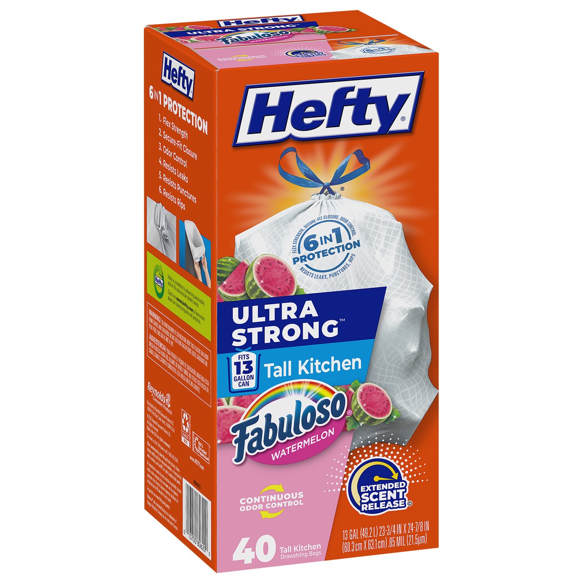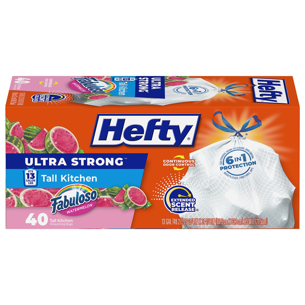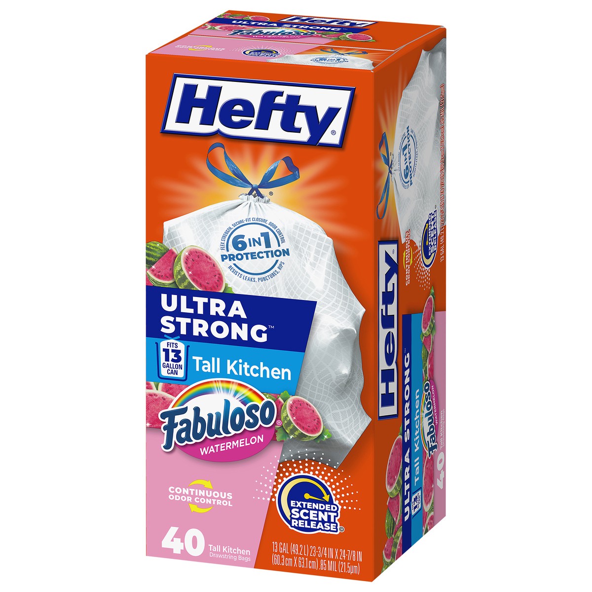 Hefty Ultra Strong 13 Gallon Fabuloso Watermelon Tall Kitchen Drawstring Bags - 40 Bags