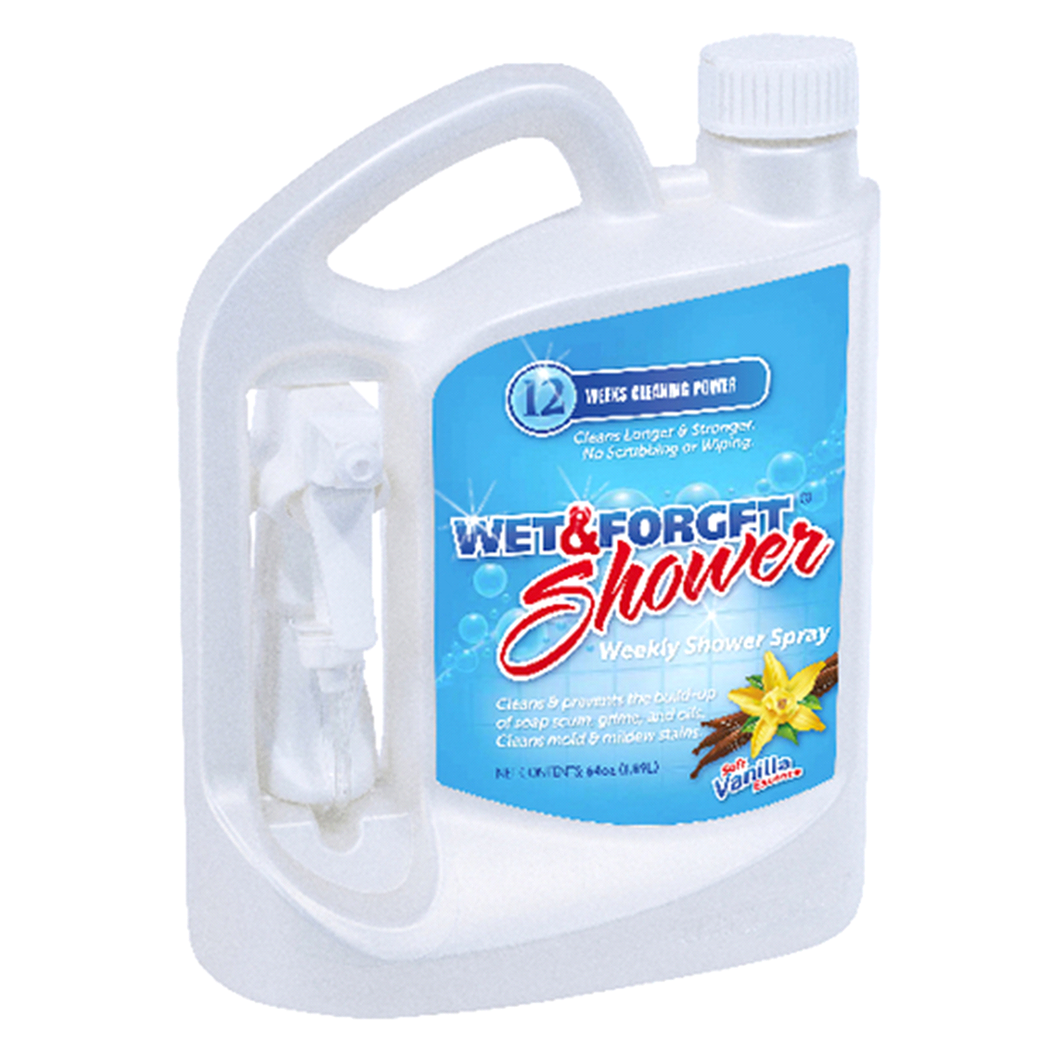12 weeks cleaning power. Cleans longer & stronger. No scrubbing or wiping. Cleans & prevents the build-up of soap scum, grime, and oils. Cleans molds & mildew stains. Cleaner: Wet & Forget Shower keep…