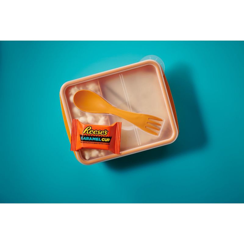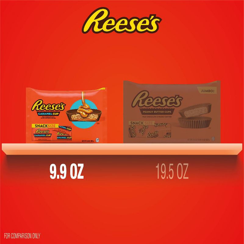 - Contains one (1) 9.9-ounce bag of REESE'S Caramel Milk Chocolate Snack Size Peanut Butter Cups Candy