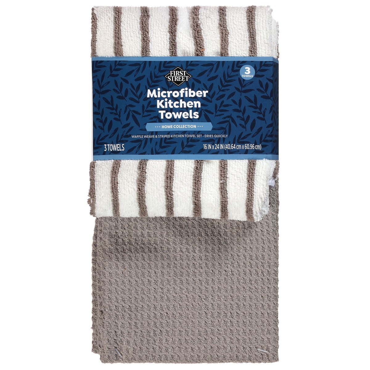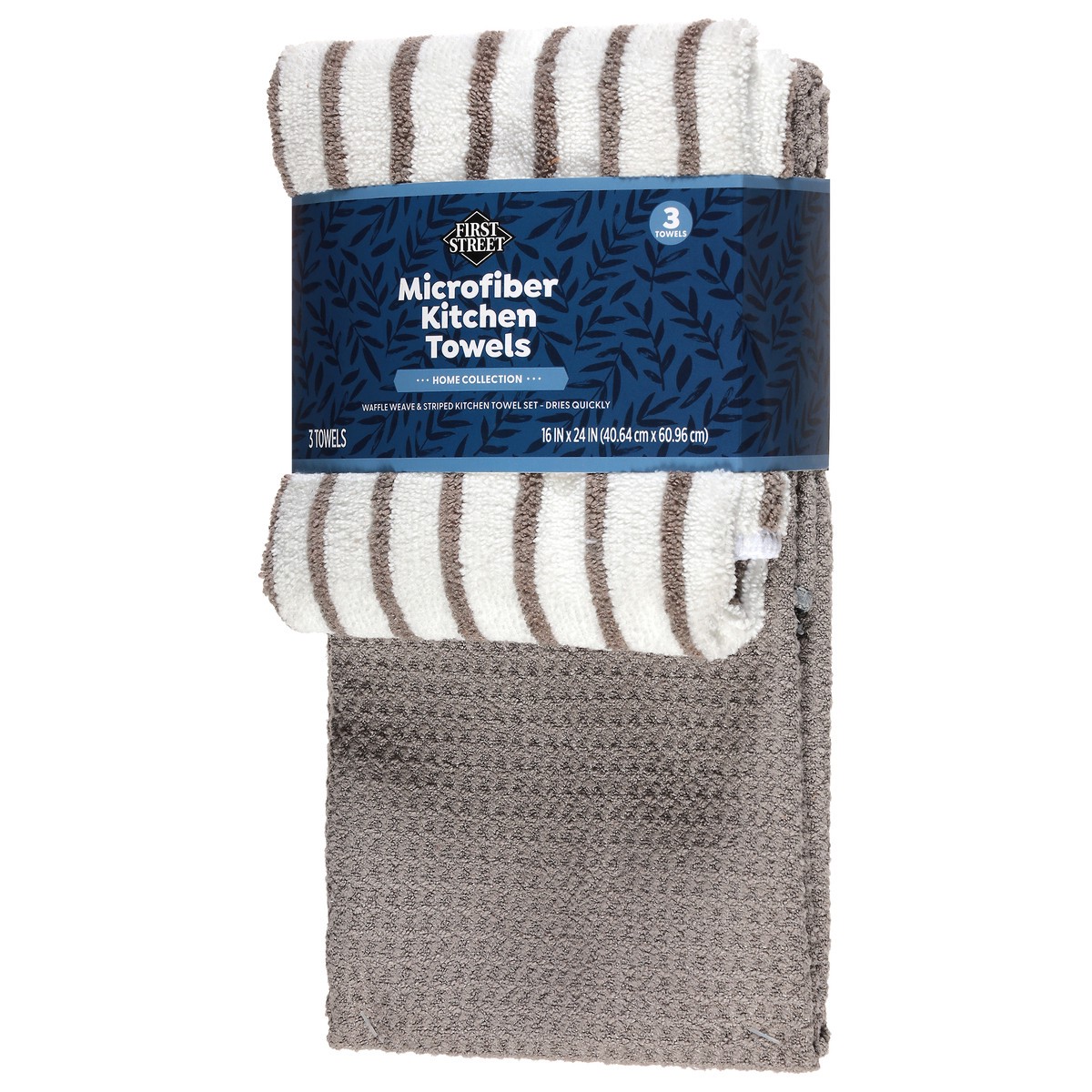Waffle weave & striped kitchen towel set - dries quickly. 16 in x 24 in (40.64 cm x 60.96 cm). Professional kitchenware collection. Heavyweight, longer lasting, dries faster, dusts & cleans with less …