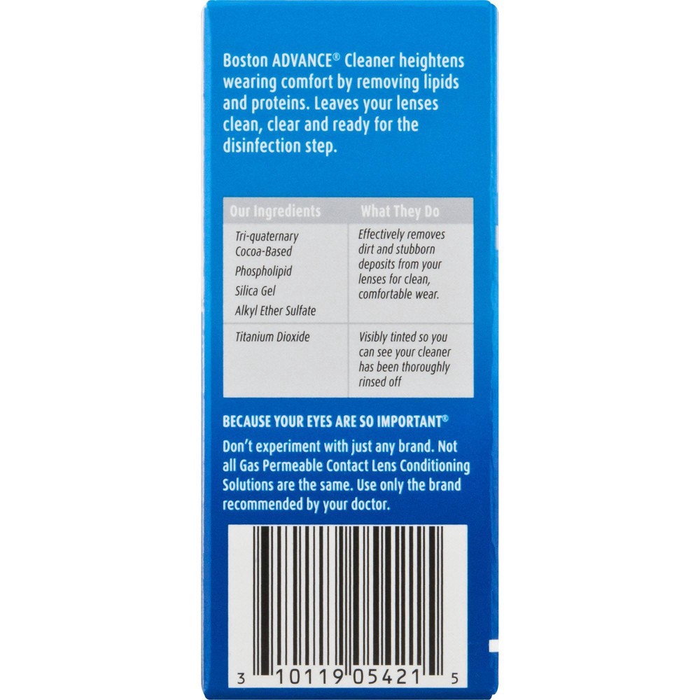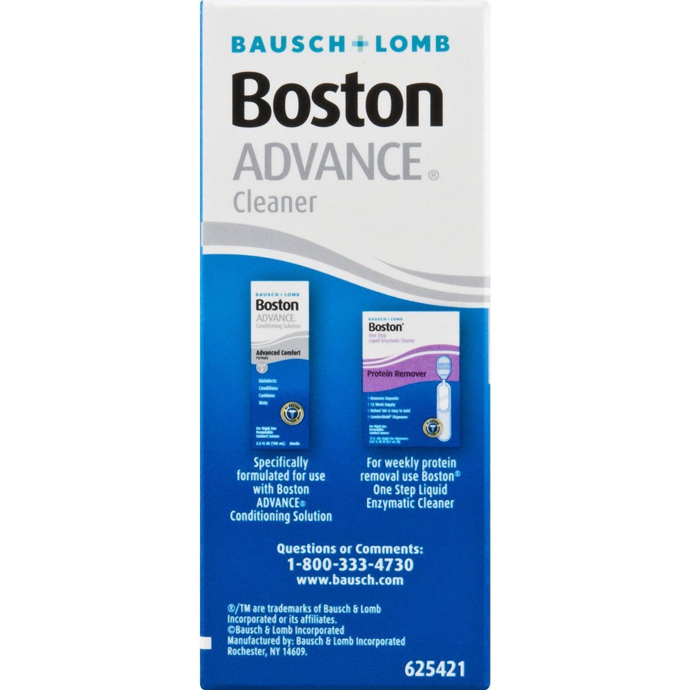 Boston ADVANCE Cleaner Contact Lens Solution, from the eye care experts at Bausch + Lomb, is step 1 in the Boston ADVANCE Formula Care System. This solution cleans your lenses and prevents the accumul…