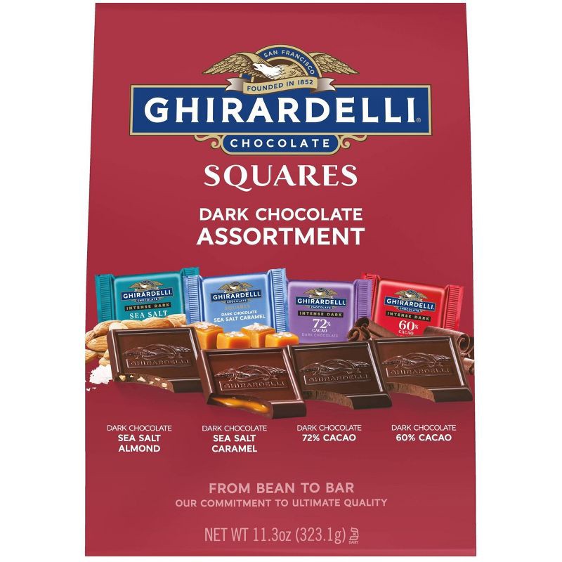 - One (1) 11.3 oz bag of GHIRARDELLI Dark Chocolate SQUARES Assortment
